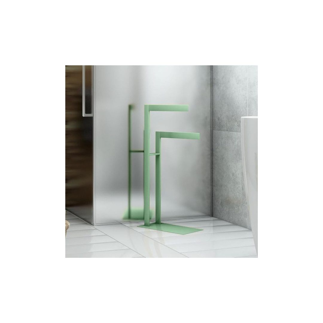 Verleihen Sie Ihrem Badezimmer eine markante Note mit dem LunaVia LUSIO Vitesse Handtuchständer im angesagten Industriestil. Dieses aus einem Stück gefertigte Accessoire besticht durch sein mattes Finish und seine robuste Bauweise aus hochwertigem rostfreiem Stahl. Dank der bereits montierten, einteiligen Konstruktion können Sie den Handtuchständer sofort nutzen. Hängen Sie Ihre Handtücher und Bademäntel stilvoll auf oder legen Sie frische Kleidung bereit – der LunaVia LUSIO Vitesse Handtuchständer, Made in Europe, bringt Ihre Textilien auf exklusive Weise zur Geltung. Tauchen Sie ein in luxuriöse Badgestaltung mit LunaVia! • In wertigem Matt Schwarz, Matt Weiß, Matt Neongelb, Matt Neonorange, Matt Taubenblau, Matt Mint • Erhältlich in den Größen (40x20x80cm), (60x30x80cm) • Ablage auf den Höhen 66/80 cm • Gewicht: 6,5 kg bzw. 11,7 kg • Material: Rostfreier Stahl • Pulverbeschichtet • Aus einem Stück gefertigt (kein Zusammenbauen) • Made in Europe, fühlen Sie die Handarbeit • Profilstärke 40x10x1,5 mm • Freistehend