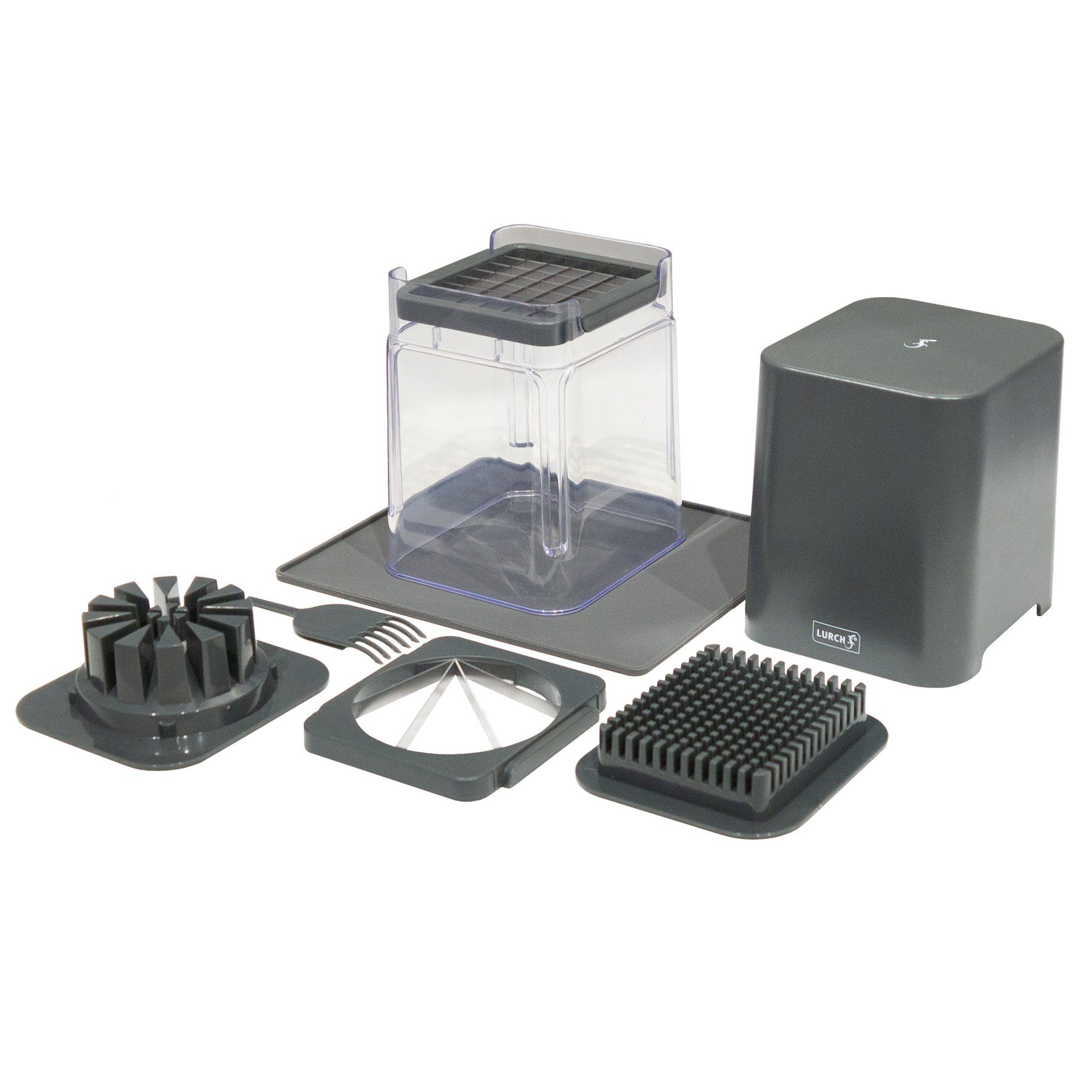 Für Menschen, die schnell und effektiv Gemüse und Obst verarbeiten wollen. Sticks für Partys oder selbstgemachte Pommes oder Äpfel für den Kuchen. Einzigartig: Besonders lange Gemüsesticks & Pommes können hergestellt werden. Schnell die Gemüsesticks geschnitten oder die Gemüsewürfel für die Suppe. Kein lästiges zeitraubendes Schneiden mit dem Messer. Gemüse aufsetzen und mit dem Pusher runtergedrückt – zack Stifte und Würfel produziert für Gurke, Kartoffel, Möhren oder Äpfel teilen usw. Für den sicheren Stand gibt es eine Silikonmatte dazu. Für das nächste Partybuffet schnell mal Gemüsesticks gemacht oder mal Pommes selbst gemacht.Auch für Würfel geeignet. Leichtgängiges Schneiden durch optimale Kraftübertragung und sehr scharfe Klingen. Der KUBUS samt Zubehör kann in der Spülmaschiene gereinigt werden.