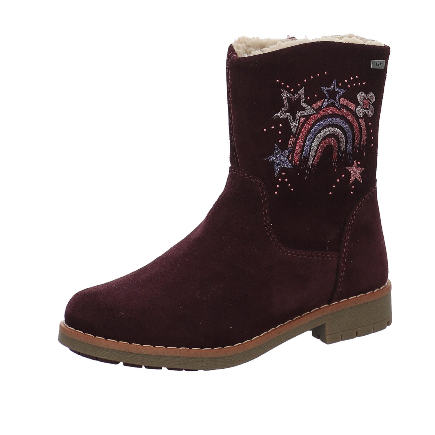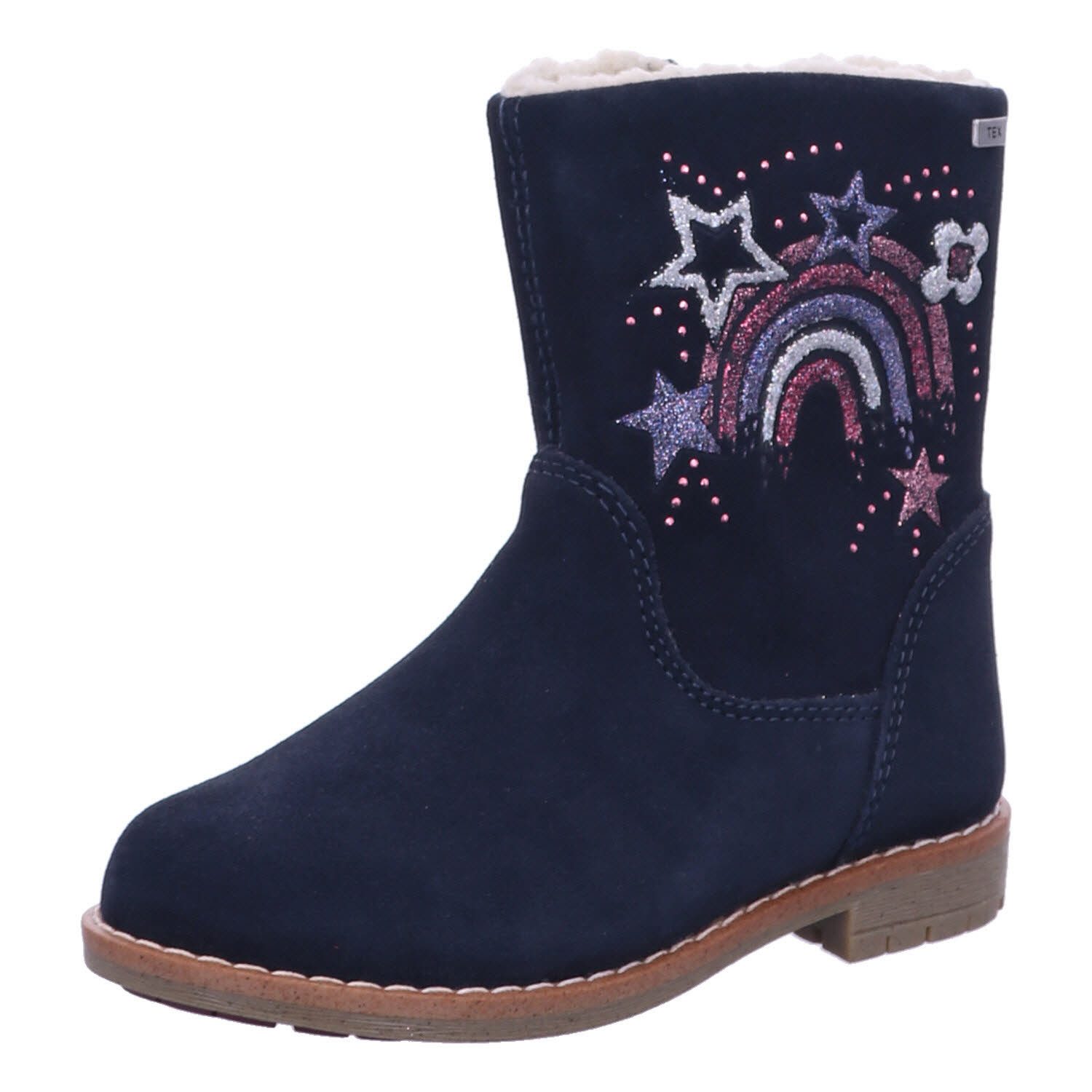 Diese Kinderstiefel in fröhlichen Farben mit Regenbogen- und Sternenmotiven kombinieren verspieltes Design mit hervorragender Funktionalität. Das glitzernde Detail sorgt für einen tollen Hingucker, während die Stiefel mit ihrem weichen Innenfutter die Füße an kalten Tagen warm halten.Die rutschfeste Sohle bietet sicheren Halt auf allen Untergründen, ob im Schnee, Matsch oder auf glatten Flächen. Mit dem praktischen Schnitt und der einfachen Handhabung lassen sich die Stiefel schnell an- und ausziehen, was sie perfekt für den Alltag macht.Diese Stiefel sind nicht nur modisch, sondern auch äußerst komfortabel und langlebig ideal für aktive Kinder, die auch im Winter gut geschützt und stylish unterwegs sein möchten.