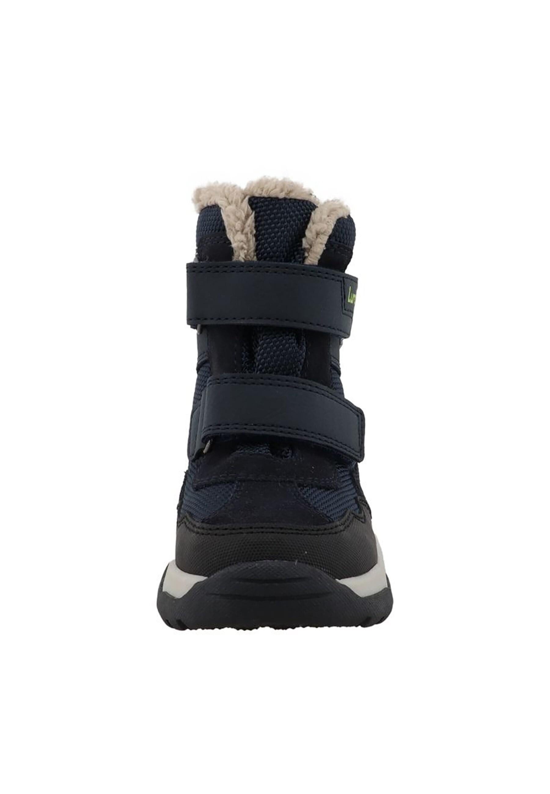 Winter Boots für den Alltag: robuste Kinder-Winterstiefel mit hohem Schaft, ideal als warme Alltagslage an kalten Tagen. Das Obermaterial besteht aus Leder kombiniert mit textilem Innenfutter, dazu eine griffige, synthetische Sohle, die sicheren Halt bietet. Zwei Klettverschlüsse sorgen für unkompliziertes An- und Ausziehen und eine anpassbare Passform, während gepolsterte Zonen am Knöchel Komfort und Stabilität liefern. Die sichtbare, weiche Fellbesatz-Optik im Schaftabschluss hält die Wärme an der Öffnung, und die verstärkte Zehenpartie schützt bei aktivem Spiel; eine praktische Wahl für den winterlichen Alltag von Kindern.