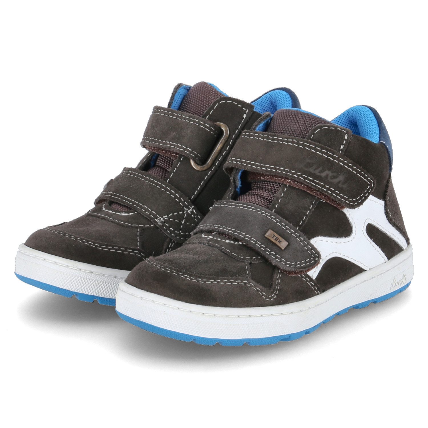Lurchi Jungen Klettschuhe/ Stiefeletten DOLTO-TEX Schwarz-Braun Rauleder - wasserdicht, atmungsaktiv- zwei Klettriemen - weißer Zierstreifen und blaue Fersenklappe - gepolsterter Einstieg - Ziernähte - verstärkter Zehen- und Fersenbereich - flexible, rutschhemmende Laufsohle - Wechselfußbett