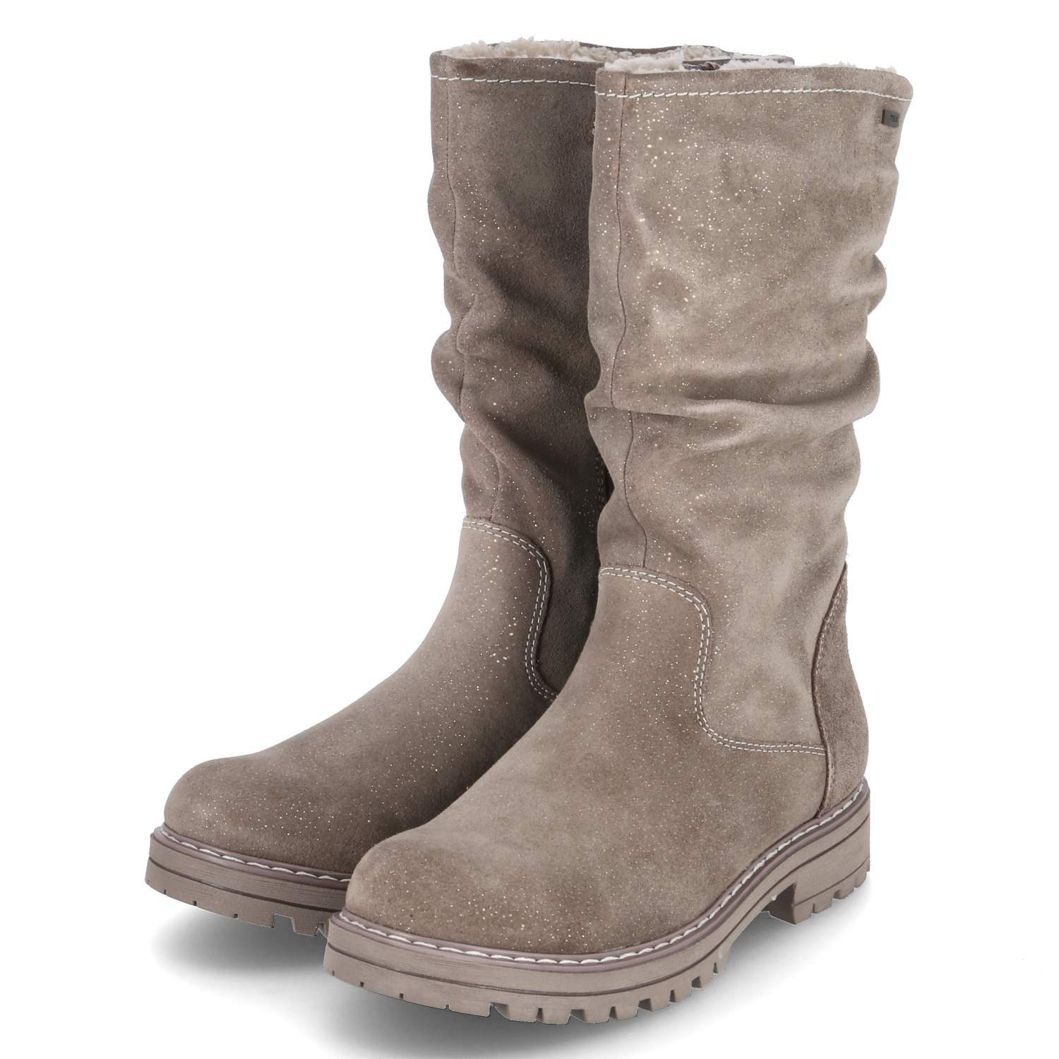 Lurchi Kinder Winterstiefel ERA Beige Rauleder - Reißverschluss mit Klettverschluss-Sicherung - Ziernähte - glitzernde Oberfläche - Wechselfußbett - verstärkter Fersenbereich - flexible, rutschhemmende Laufsohle mit Profil - ca. 3 cm Blockabsatz - wasser- und winddicht