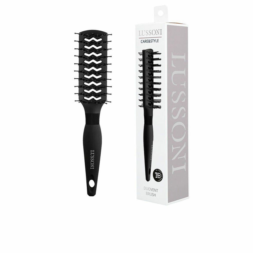 Eine Doppelseitige Styling Bürste speziell geeignet für kurzen und sehr kurzen Haaren. Nützlich beim Modellieren von Männer- und Frauenhaaren. Die LussoniCare & Style DuoVent-Bürstewurde entwickelt, um das Haarstyling und die effektive Reflexion der Haut so weit wie möglich zu erleichtern. Die Lussoni Care & Style Kollektion zum Kämmen und Stylen von Haaren wurde in Zusammenarbeit mit Stylisten entwickelt. Der Lussoni Care & Style DuoVent Brush Stylingbürste wird von professionellen Friseuren anerkannt, eignet sich aber auch hervorragend für die häusliche Pflege. LUSSONIist eine Linie von der MarkeTools for Beautyfür professionelle Accessoires für Make up, Haare und Nägel, die in Zusammenarbeit mit Stylisten, Visagisten und Friseuren entwickelt und gestaltet wurden. Die Marke bietet Hochwertige Produkte, die die Wünsche von Profis und Beauty Liebhaber befriedigen. Klassisches Design und Hochwertigen Materialen zeichnen die Accessoires aus. LUSSONI by T4Bist eine Kollektion professioneller Make-up- und Haarstyling-Accessoires, die in Zusammenarbeit mit Stylisten, Visagisten und Friseuren entwickelt und entworfen wurden