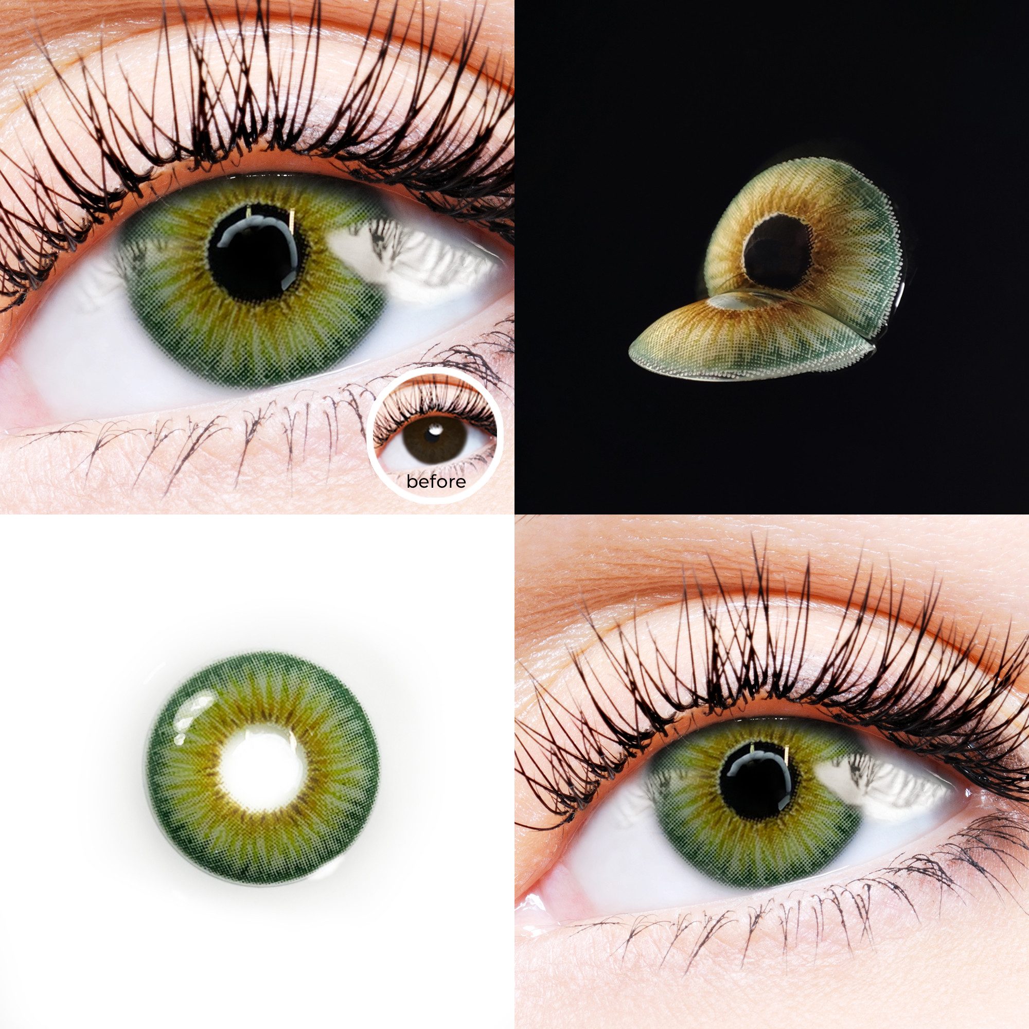Fairy Green Farblinsen sind mit Motivlinsen vergleichbar - bis zu 100% Deckkraft. Getragen werden können die Farblinsen selbst dann, wenn Ihre eigene Augenfarbe ein dunkleres Braun als die Kontaktlinsen hat. Dank hervorragender Farbqualität handelt es sich um sehr stark deckende farbige Kontaktlinsen. Damit werden helle oder dunkle Augen komplett überdeckt. Fairy Green Kontaktlinsen lassen Ihre Augen sofort in einem auffallenden Design erscheinen und größer wirken.