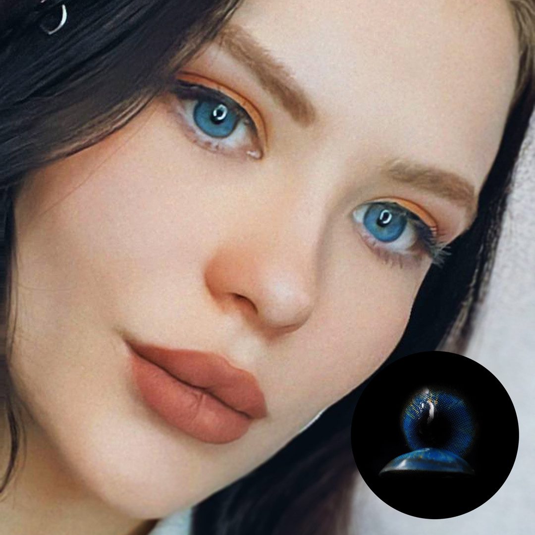 Betrachtende werden bei dem Anblick der blauen Linsen dahinschmelzen und in den Tiefen des Farbspektrums versinken. Es ist ein Blau wie aus 1.001 Nacht, wie die Unendlichkeit des Kosmos und den Weiten des Ozeans mit zarten Gold-Sprenkeln. Die Farbe die Monatslinsen regt eindeutig die Fantasie an und deshalb werden sie am liebsten bei besonderen Events, wie auf der Bühne, beim Cosplay, zu Halloween oder bei Motto-Partys, eingesetzt. Dort werden Sie ihre Mitmenschen garantiert mit der neuen Augenfarbe überraschen und für viel Bewunderung sorgen. Aber auch für den täglichen Gebrauch sind diese farbigen Kontaktlinsen geeignet, denn trotz des eindrucksvollen Farbenspiels wirken sie ultra natürlich. Durch die exzellente Farbbeschichtung wird von Ihrer eigenen Augenfarbe während des Tragens kaum mehr zu sehen sein. Die farbigen Kontaktlinsen sind sowohl für dunkle, braune als auch helle Augen intensiv deckend.