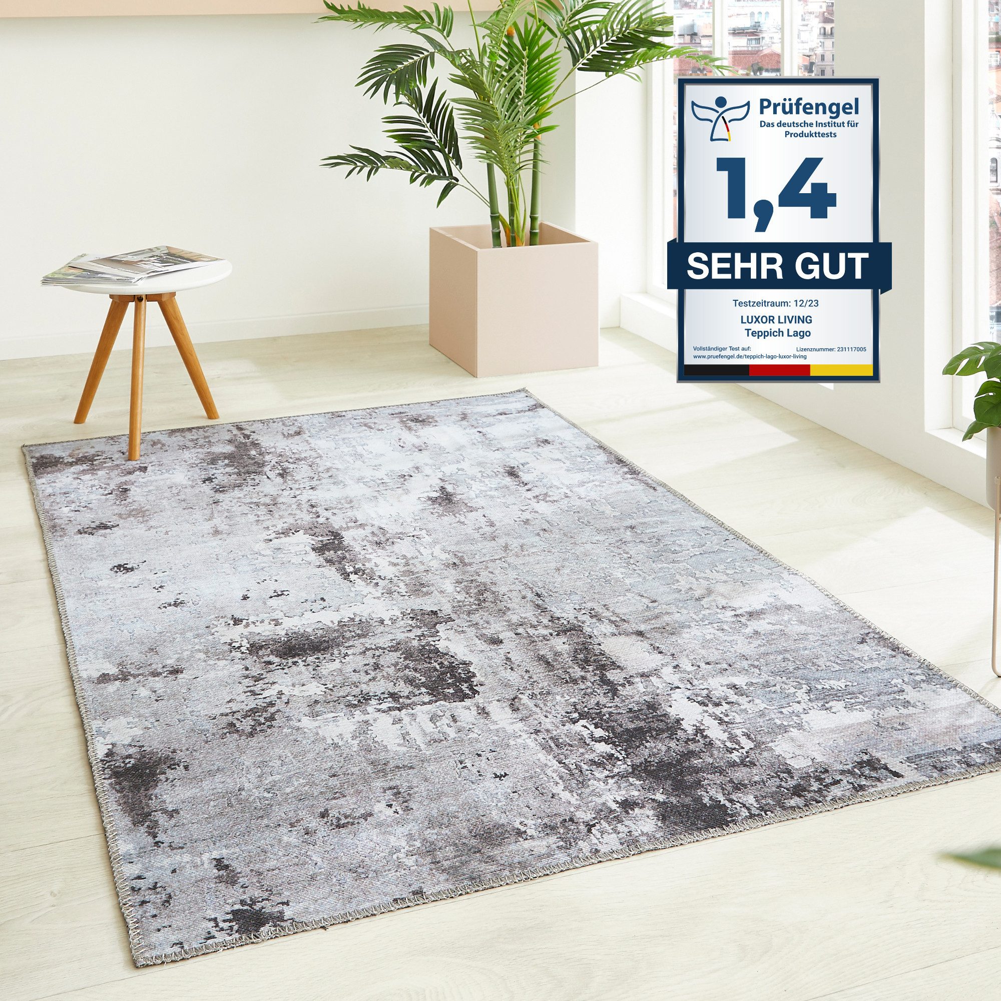 Hinweis) | Dieser Artikel wird zum Schutz der Umwelt bewusst volumenreduziert verpackt & gefaltet ausgeliefert. Daher benötigt der Teppich einige Tage um die Falten vollkommen verschwinden zulassen. |