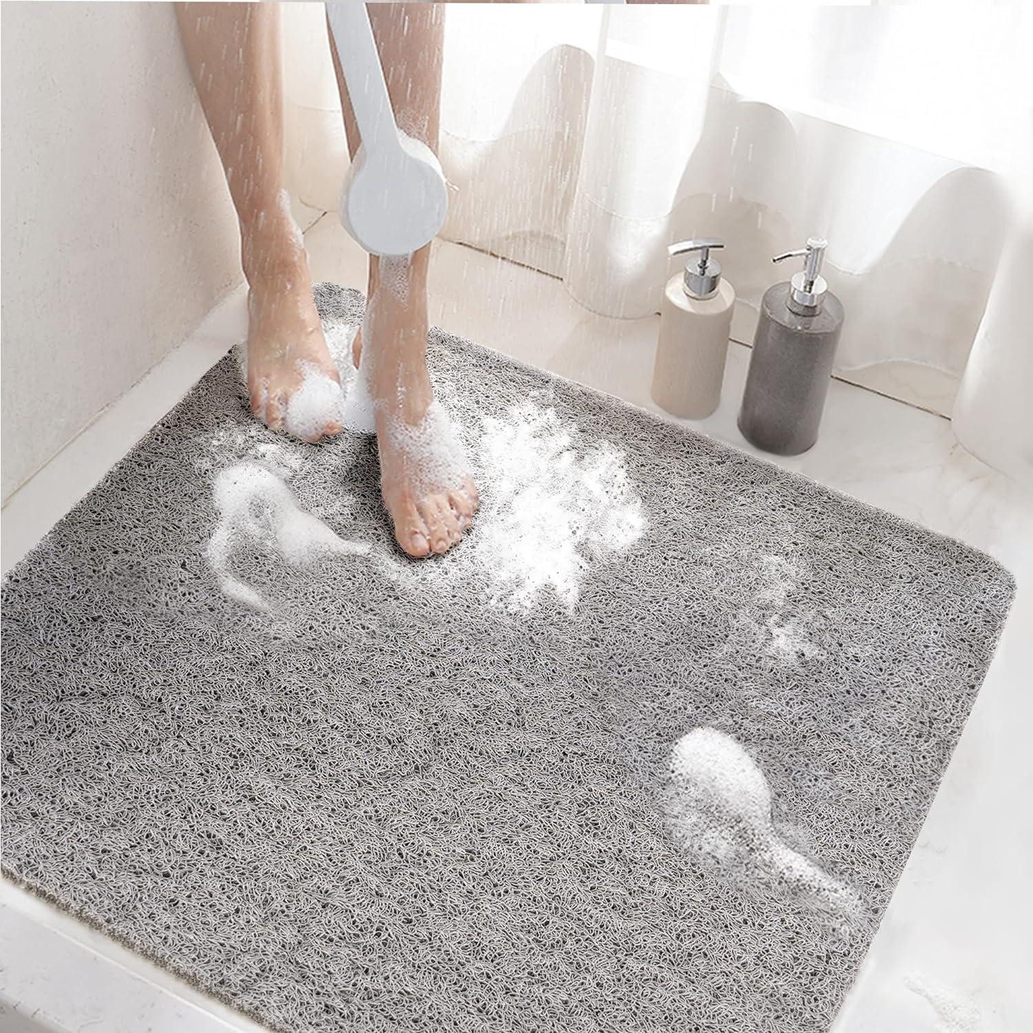Zuschneidbar und in perfekten Größen: Anpassbare Badewannenmatten! Schneiden Sie die Matte auf die gewünschte Размер und Form zu, damit sie perfekt in jede Ecke Ihres Hauses passt. Diese Badewannenmatte für die Dusche ist 60x60cm groß und passt auf die meisten Badewannen und Böden. Erhältlich in 4 beliebten Farben, passend zu praktisch jedem Badezimmerdekor-Thema, perfekte Wahl für Zuhause, Fitnessstudio oder Spa. Leicht zu reinigen und schnell trocknend: Dieser Teppich ist leicht zu reinigen. Spülen Sie einfach den Schaum oder die Haare mit dem Duschkopf von der Matte ab und hängen Sie ihn zum Trocknen an einen belüfteten Ort. Schnelle Trocknung, Beibehaltung des frischen Aussehens und einfache Pflege. Premium-Qualität für maximalen Komfort: Hochwertige, weiche PVC-Luffa-Duschmatte für eine strukturierte Wannenoberfläche mit idealer Dicke, die bequem beim Duschen barfuß ist, Ihre Füße sanft massiert und Ihre Haut peelt und Sie von kalten Böden fernhält. Phthalatfrei und geruchlos. Ideal für ältere Menschen, Babys und kleine Kinder. Hocheffiziente Entwässerung: Die hohle Schlaufenoberfläche und der Gitterboden bilden Hunderte von Abflusslöchern, die die Zirkulation von Wasser und Luft ermöglichen, was dazu beiträgt, die Bildung von Wasser und Flecken zu verhindern und die Badewannenmatte schnell trocken und sauber zu halten. Rutschfest und sicher: Dank der sichereren und haltbareren karierten Rückseite bleibt unser badematte rutschfest auch auf nassen Oberflächen stabil an Ort und Stelle. Die Textur auf der Oberseite von rutschmatte badewanne erhöht die Reibung und verhindert, dass Sie in der Badewanne ausrutschen oder fallen. Keine Saugnäpfe: Unsere rutschfeste Badewannenmatte sind mit einer Anti-Rutsch-Schicht ohne Saugnäpfen ausgestattet, die dabei hilft, die Duschmatte fest an Ort und Stelle zu halten und gleichzeitig die Badewanne zu schonen. Im Gegensatz zu herkömmlichen Badematten mit schwer zu reinigenden Saugnäpfen würde unsere Matte nicht herumrutschen und Ihre Wanne oder Bodenoberfläche beschädigen.