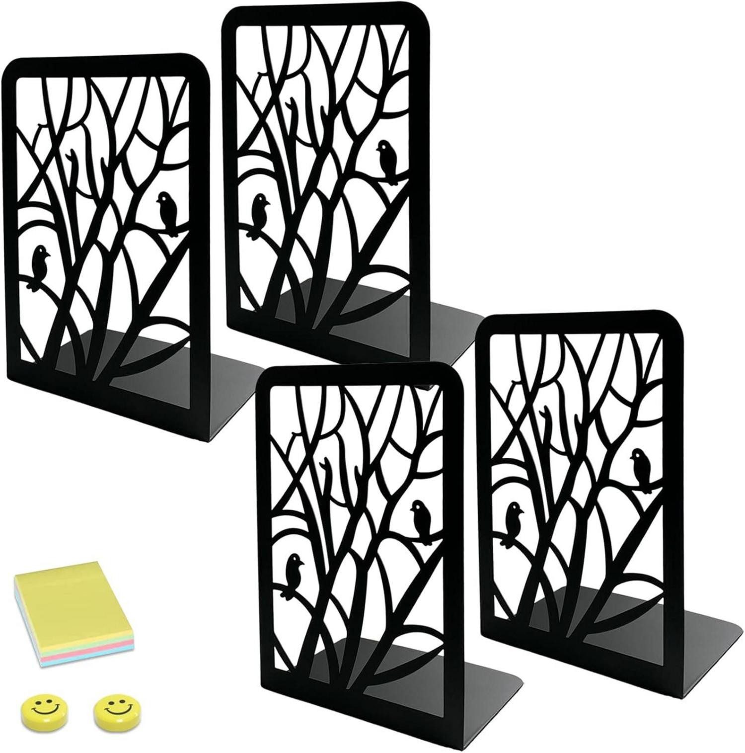 Das moderne und einzigartige Design mit Baum- und Vogelmotiven verleiht Ihrem Raum eine stilvolle Note. Die L-förmige Struktur sorgt dafür, dass Ihre Bücher ordentlich und aufrecht stehen bleiben, während die stabilen Metallkonstruktionen sicherstellen, dass sie fest an ihrem Platz bleiben. Egal ob im Regal, auf dem Schreibtisch oder im Bücherregal, diese Buchstützen sind sowohl praktisch als auch dekorativ.