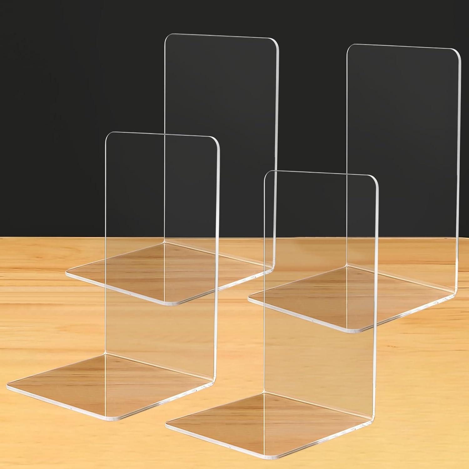 Die transparente Natur der Buchstützen ermöglicht eine ästhetische Präsentation Ihrer Bücher, indem sie die Buchrücken und Cover sichtbar werden lassen. Dadurch schaffen sie ein aufgeräumtes Erscheinungsbild und passen sich harmonisch verschiedenen Einrichtungsstilen an.