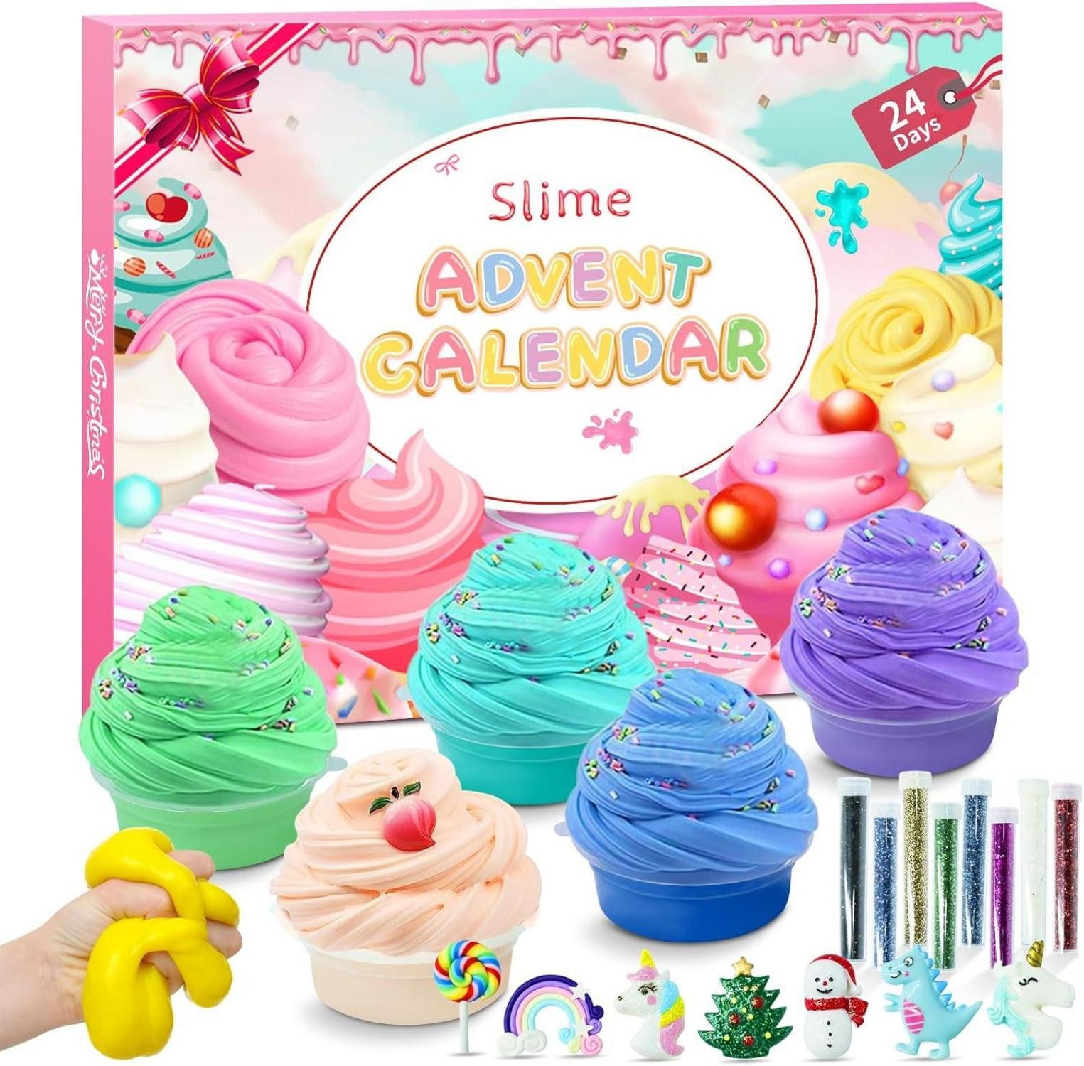 ????MULTI-PURPOSE SLIME: Nicht nur für Weihnachts-Adventskalender und Weihnachtsspielzeug geeignet, sondern kann auch Druck ablassen, indem man den flauschigen und weichen Schleim zusammendrückt; er hat eine kleine Klebrigkeit, um leichten Staub wegzukleben.