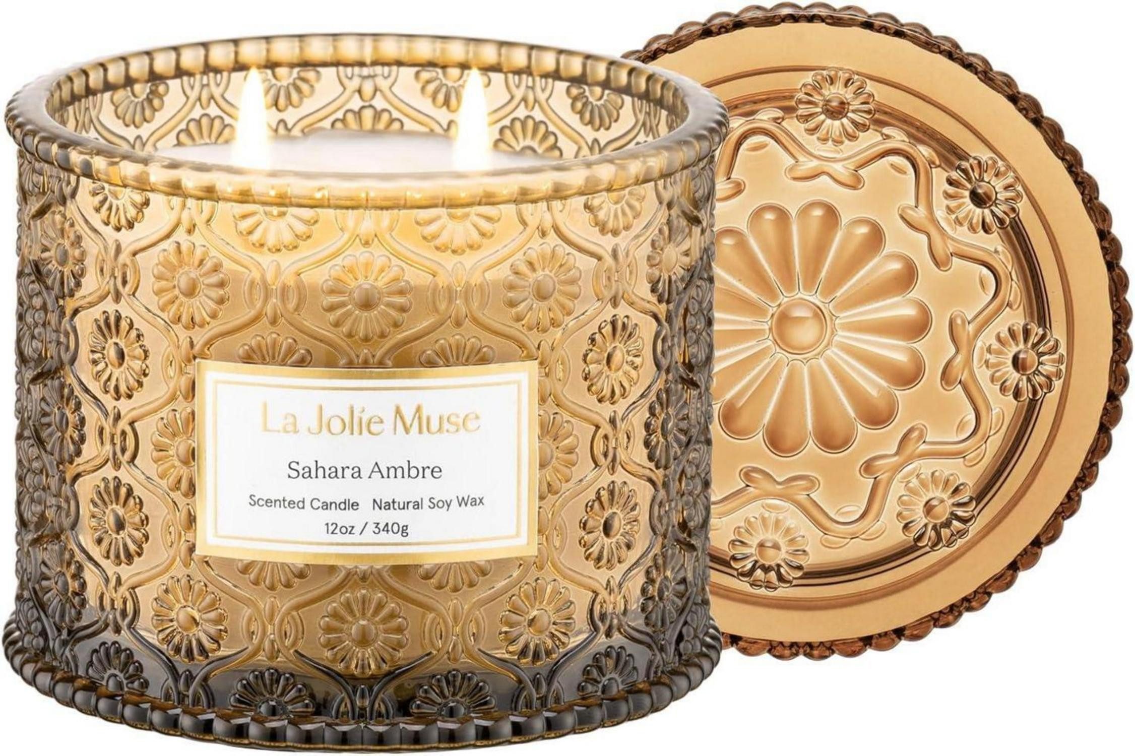 (мы ещё работаем над переводом, извините за неудобство): Die LA JOLIE MUSE Sahara-Ambra-Kerze ist eine Luxus-Kerze, die von den Stammkunden geliebt wird. Das Gänseblümchen-Prägedesign auf dem Glas verleiht der Kerze einen dekorativen Charme, der jeden Raum aufwertet. Inspiriert von exotischen Gewürzen von einem marokkanischen Basar, vereint dieser Duft honigartigen Safran, moschusartigen Amber und minzigen Eukalyptus zu einem einzigartigen Aroma, das zur Entspannung beiträgt. Mit einem Gewicht von 340 g und zwei bleifreien Dochten aus Baumwolle brennt diese Kerze sauber und gleichmäßig für etwa 60 Stunden. Hergestellt aus natürlichem Sojawachs ist diese Kerze vegan und frei von schädlichen Chemikalien, was ein sicheres Dufterlebnis garantiert.