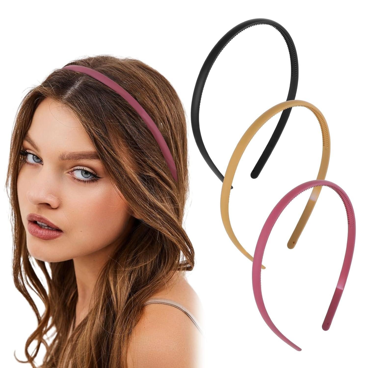 Haarbänder mit zuverlässigem Material: Unsere Stirnbänder bestehen aus ABS-Kunststoff, der lange verwendet werden kann und dennoch seine ursprüngliche Form behält, ohne zu verblassen. Kunststoff-Haargummis haben eine gute Elastizität und üben keinen Druck auf die Kopfhaut aus. Das Haar verformt sich leicht, wenn es durch äußere Kräfte zusammengedrückt wird.