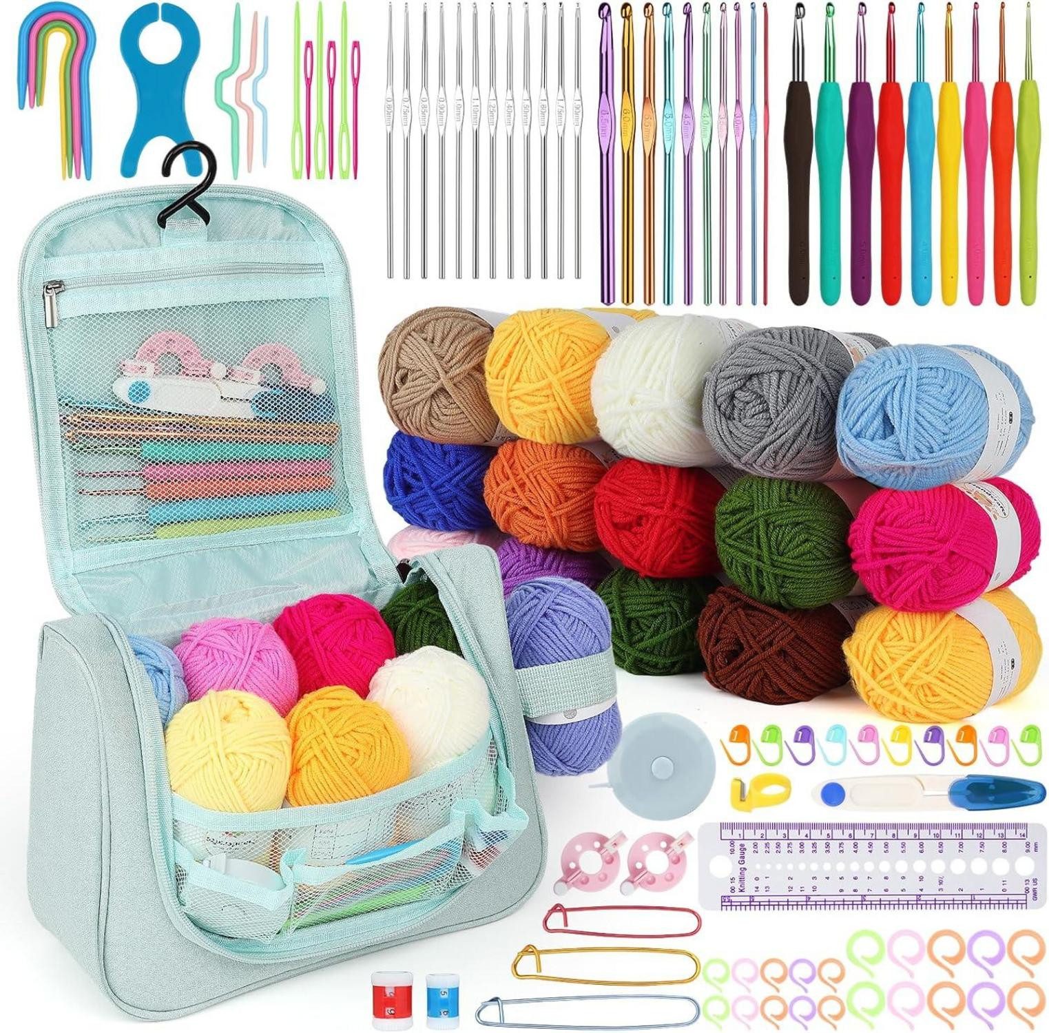 [Praktisches Zubehör mit 15 Acrylwolle] -- Das komplette Häkelset für Anfänger ist ein preiswertes Set mit ergonomischer Häkelnadel, alles ist in diesem kleinen Set enthalten, um mit dem Häkeln zu beginnen, die Nadeln sind leicht und einfach zu handhaben mit einem guten Griff, das andere Zubehör wie Maschenmarkierer, Schere, sie sind super praktisch bei Ihren zukünftigen Kreationen, praktisch für Anfänger, Profis, Großmutter.