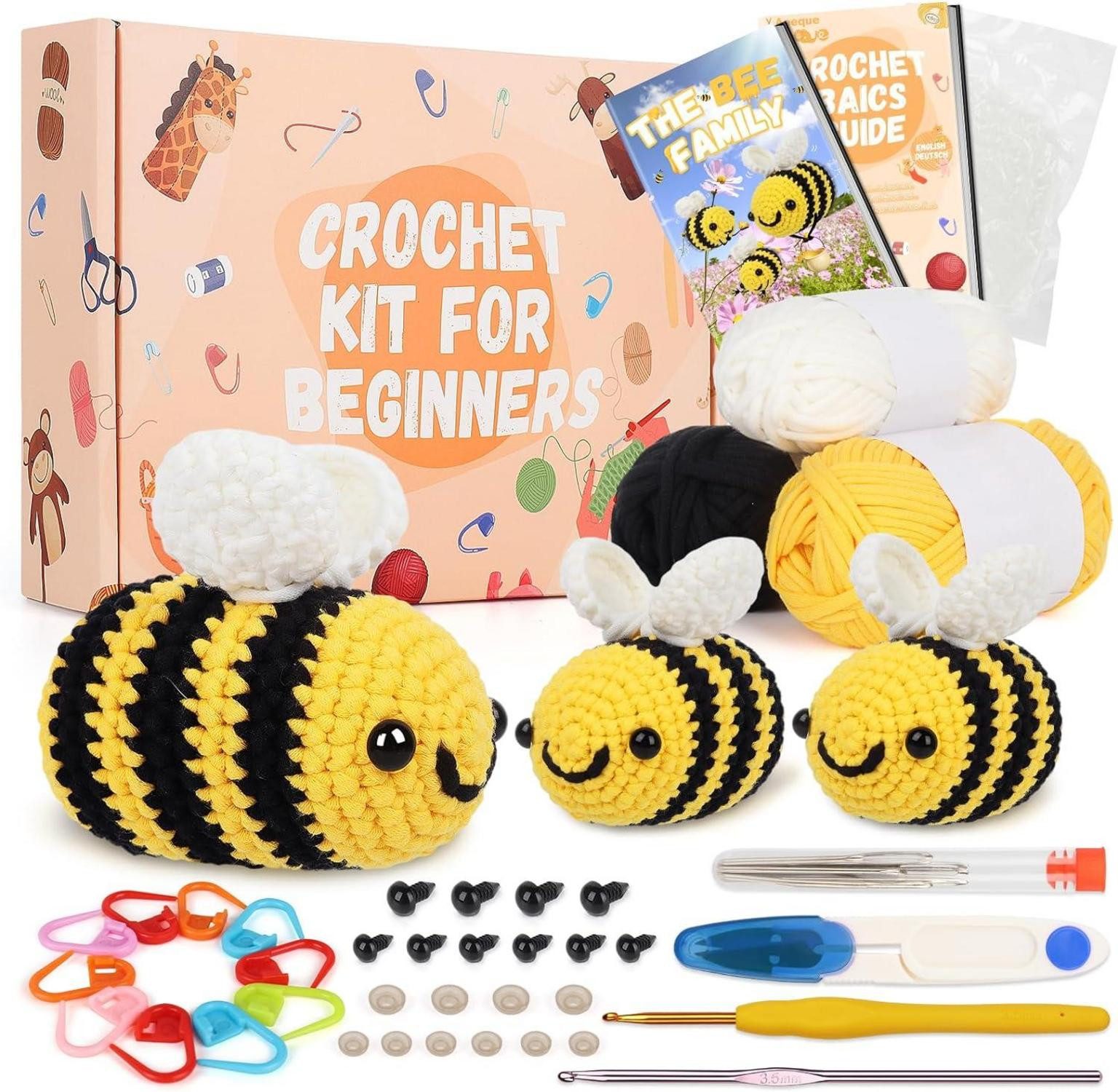 [Gehäkelte Tiere] -- Das Crochet Kit enthält eine Vielzahl von TierTiern: Bienen 2 Größen. Sie können Ihre Freizeit damit verbringen, mit dem Häkelset Tiere eine niedliche Flower Sea World für sich selbst zu erschaffen. Sie können auch versuchen, Geschichten für diese Häkeltiere zu erfinden, Genießen Sie glückliche Zeiten mit der Familie.
