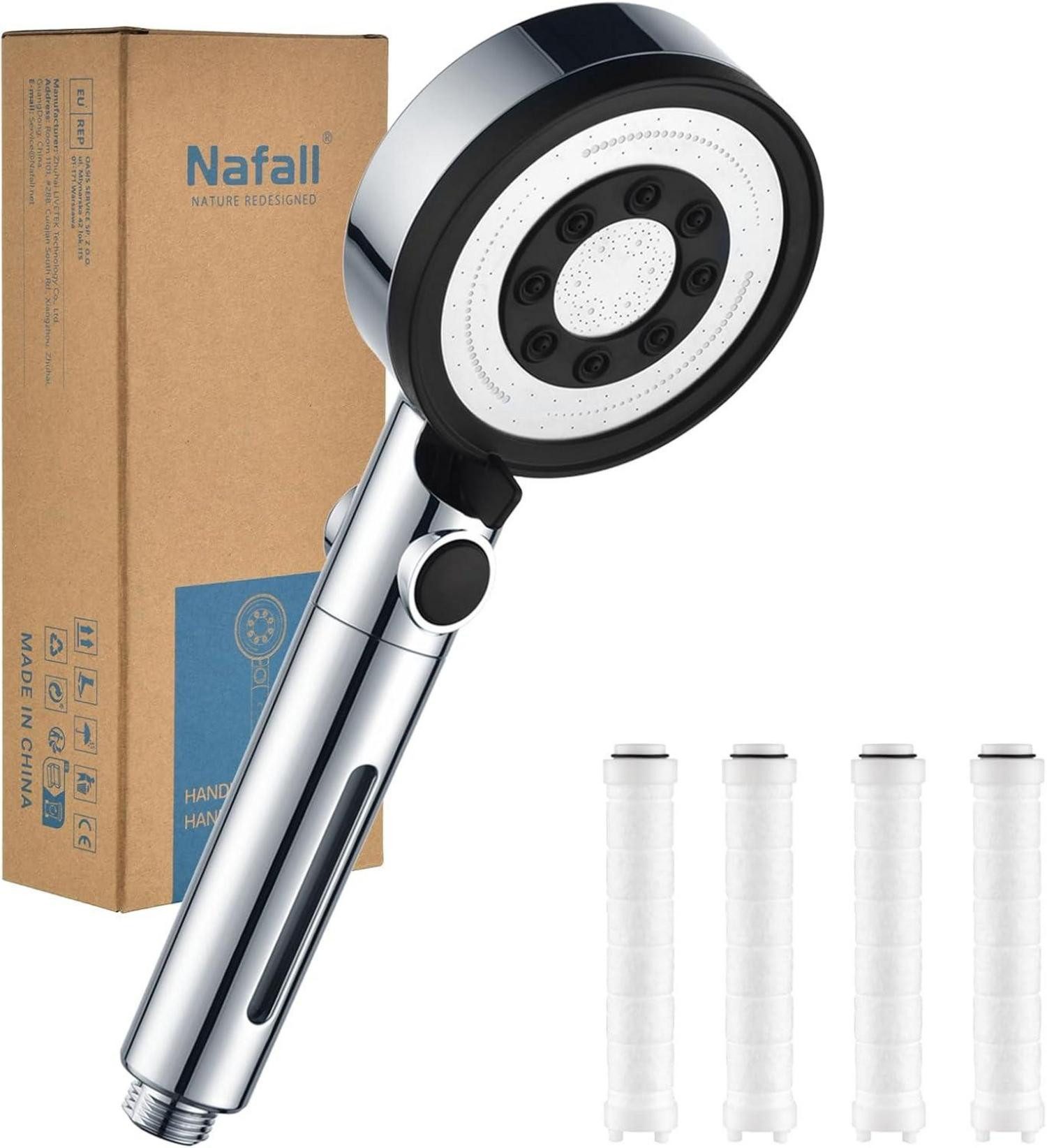 Der Nafall Duschkopf mit 4 PP Фильтры ist die perfekte Lösung für Ihr Badezimmer. Dank der 4 mitgelieferten Filtereinsätze können Sie sicher sein, dass Ihr Duschwasser von Schadstoffen gereinigt wird und Ihre Haut und Gesundheit geschützt sind.
