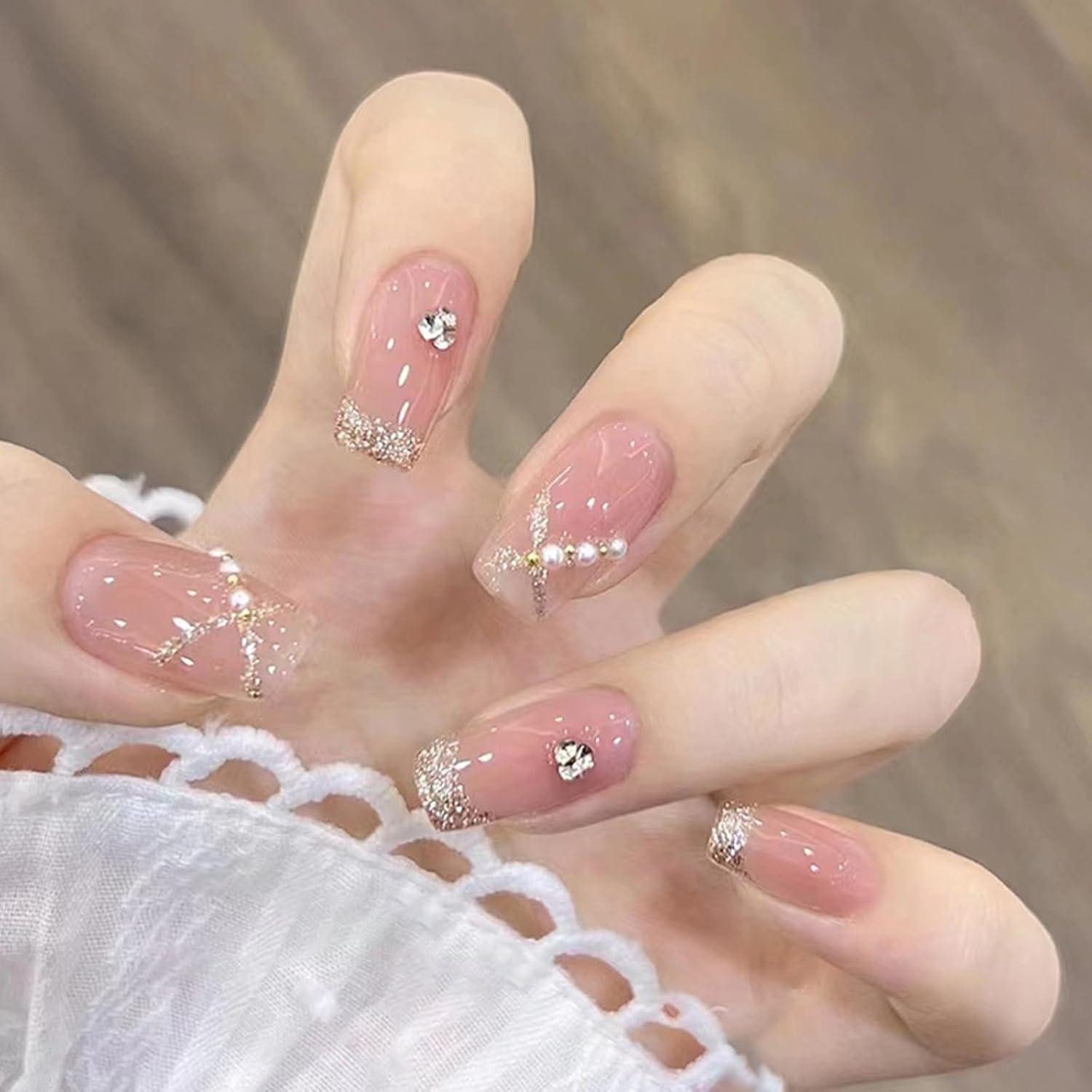 Das Perle Strass French Design verleiht Ihren Nägeln einen Hauch von Glamour und Eleganz, während der rosa Glitzereffekt für einen funkelnden Auftritt sorgt. Diese Acryl Falsch Nägel passen sich perfekt an Ihre Nagelform an und bieten einen natürlichen Effekt, der wie echte Nägel aussieht.