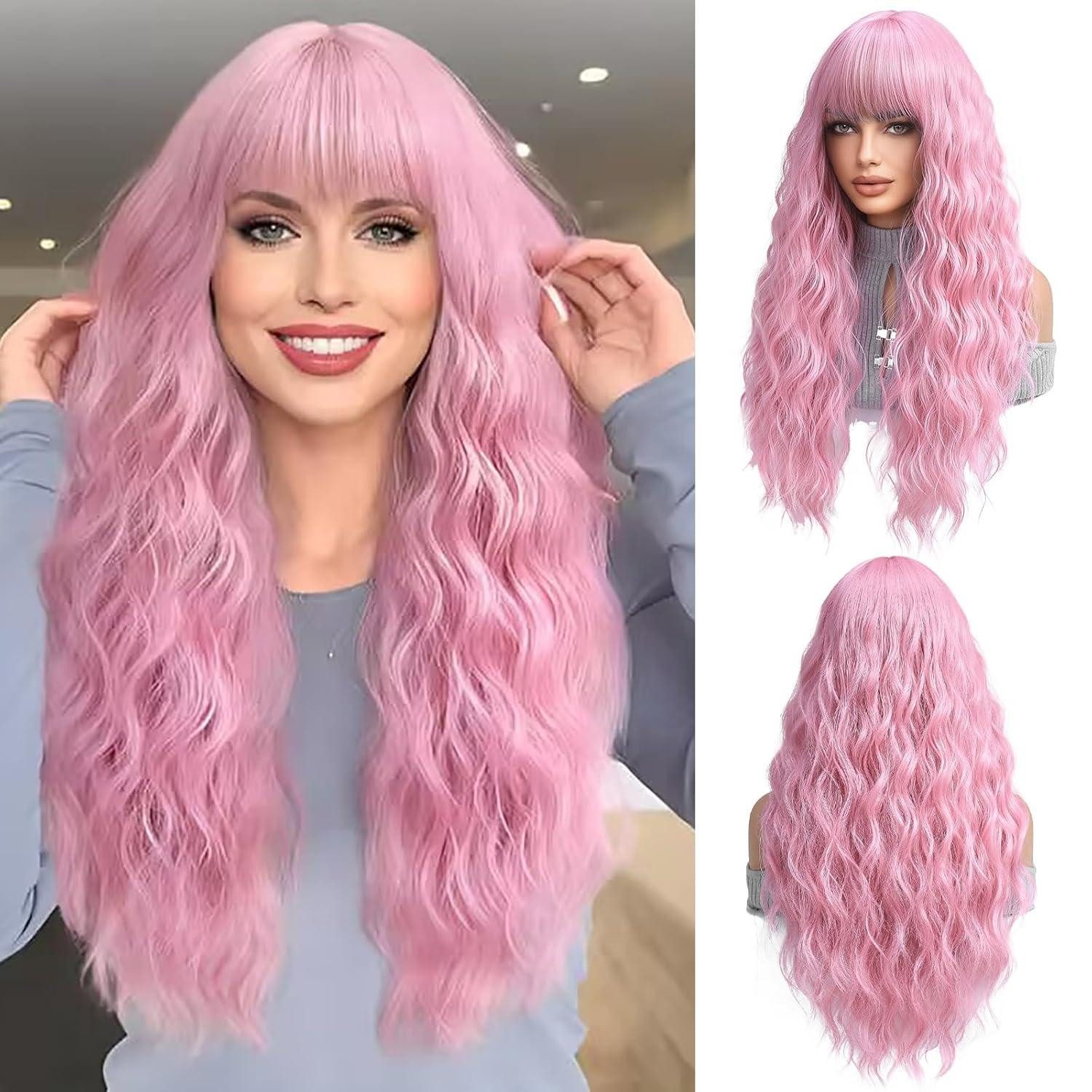 Die lange gewellte rosa Perücke für Frauen mit Pony ist das perfekte Accessoire, um Ihrem Look einen Hauch von Eleganz und Raffinesse zu verleihen. Mit natürlichen gewellten Haaren und einer auffälligen rosa Farbe ziehen Sie alle Blicke auf sich.