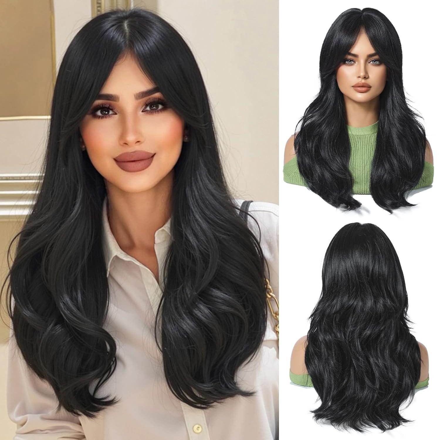 Die lange schwarze Perücke mit Vorhang Pony ist das ideale Accessoire, um Ihrem Look einen Hauch von Eleganz und Glamour zu verleihen. Die natürlichen gewellten Haare aus hochwertigen japanischen Kanekalon Fasern sehen aus und fühlen sich an wie echtes Haar, sind jedoch hitzebeständig und einfach zu pflegen.