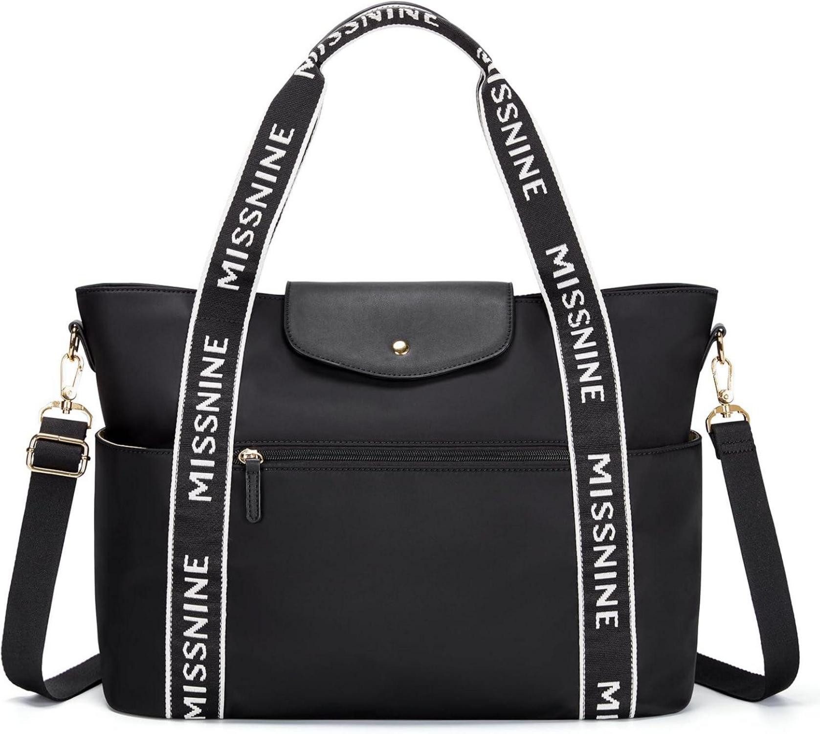 Die Missnine Handtasche Laptoptasche für Damen ist ein stilvolles und funktionales Accessoire, das sich für verschiedene Anlässe eignet. Hergestellt aus strapazierfähigem Material und verziert mit einem exquisiten Logo-Gurtband, ist diese Computertasche nicht nur schick, sondern auch langlebig.