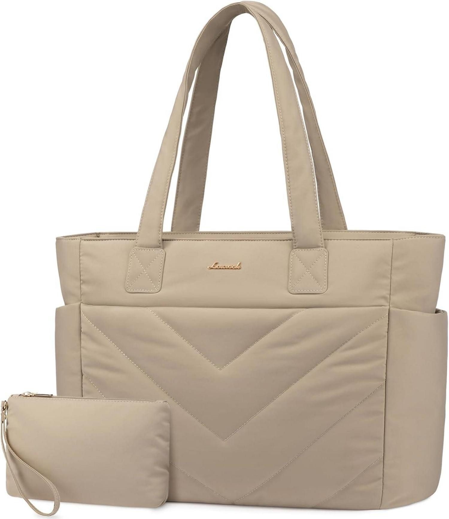 ERWEITERTE BESCHREIBUNG: Die LOVEVOOK Laptoptasche für Damen ist der ideale Begleiter für vielfältige Anlässe. Sie eignet sich perfekt als Arbeitstasche, Lehrertasche, oder Reisetasche und ist somit äußerst vielseitig einsetzbar. Ob für die Arbeit, Reisen, Schule, den täglichen Gebrauch, Einkaufen oder Fitness - diese Tasche kann leicht alles bewältigen. Mit Maßen von 42,5 x 31,5 x 14,5 cm bietet sie eine großzügige Kapazität und ist mit mehreren Fächern und Taschen ausgestattet, um eine einfache Klassifizierung und Verwaltung Ihrer Utensilien zu ermöglichen. Das gepolsterte Laptopfach passt problemlos für Laptops bis zu 15,6 Zoll, sodass Ihre elektronischen Geräte sicher und gut geschützt sind.Das stilvolle Design mit V-förmigem Nahtmuster verleiht der Tasche einen einzigartigen und eleganten Touch, der sich nahtlos in verschiedene Outfits integriert. Das hochwertige, leichte Material sorgt dafür, dass die Tasche nur 0,45 kg wiegt, was die Belastung des Benutzers deutlich reduziert und für ein angenehmes Trageerlebnis sorgt.Überraschen Sie Freunde, Familie oder sich selbst mit dieser praktischen und zugleich stilvollen Laptoptasche von LOVEVOOK in zeitlosem Khaki. Perfekt als Geschenk für Geburtstage, Weihnachten oder andere besondere Anlässe. Jetzt bestellen und die perfekte Begleiterin für Ihren Alltag erhalten!