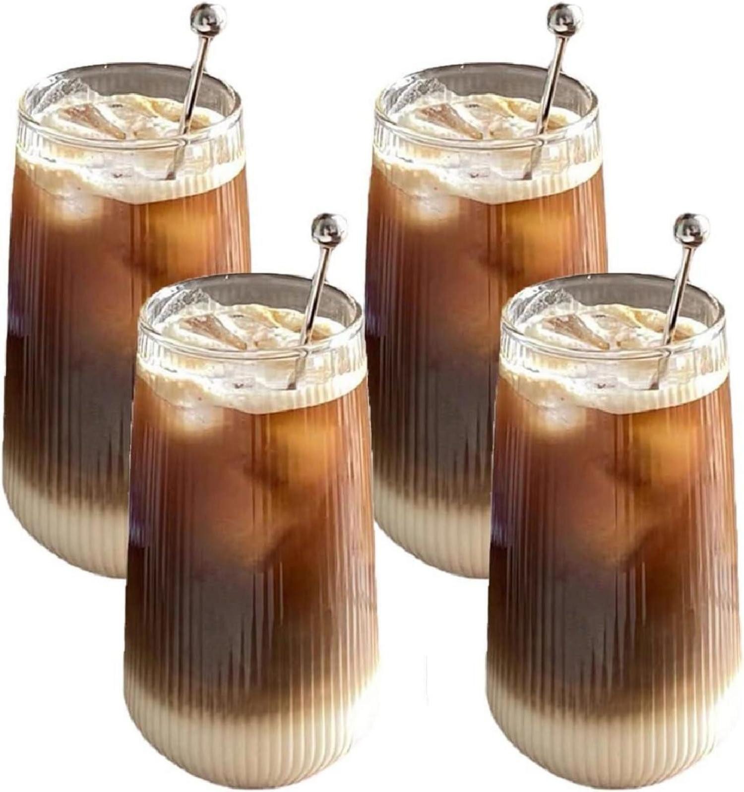 Das geriffelte Glasdesign verleiht den Gläsern einen modernen Touch und eignet sich ideal für den täglichen Gebrauch in Ihrem Zuhause, im Café, in Bars oder Restaurants. Ob heißer Kaffee am Morgen oder ein erfrischender Eiskaffee am Nachmittag, diese Gläser sind vielseitig einsetzbar und für alle Getränke geeignet.