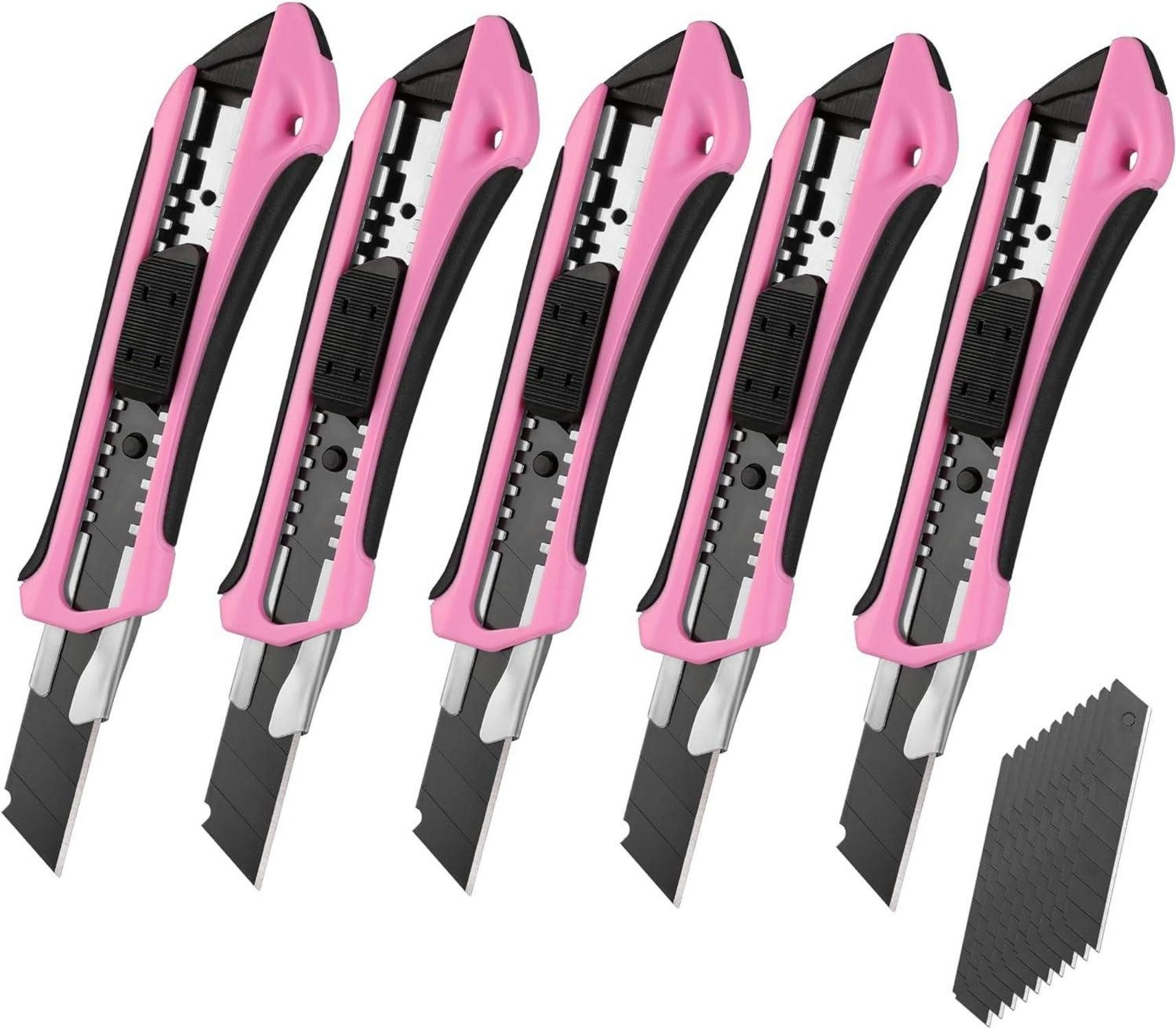 Der ergonomische Griff in rosafarbenem ABS und schwarzer TPR-Beschichtung bietet nicht nur Stil, sondern auch Komfort und Kontrolle während des Schneidens. Das Messer ist kompakt und leicht, was es ideal für den täglichen Gebrauch macht. Dank des Lochs am Ende des Griffs können Sie das Cuttermesser bequem aufhängen und haben es immer griffbereit.