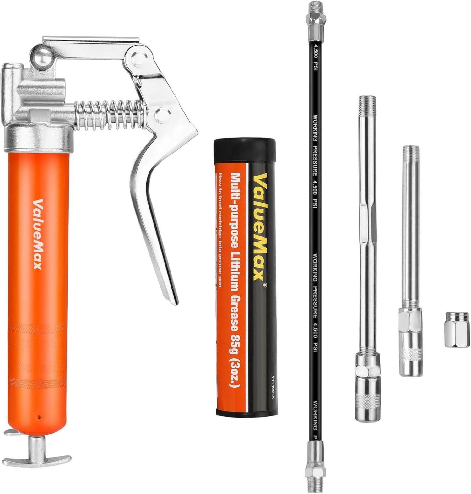 Das Zubehör umfasst 85g Schmierfett, einen 300mm flexiblen Schlauch für schwer zugängliche Stellen, 148mm & 99mm Metallrohre, ein Mundstück und eine Schutzkappe. Diese Vielzahl an Optionen ermöglicht verschiedenste Kollokationen, um Ihren individuellen Anforderungen gerecht zu werden.