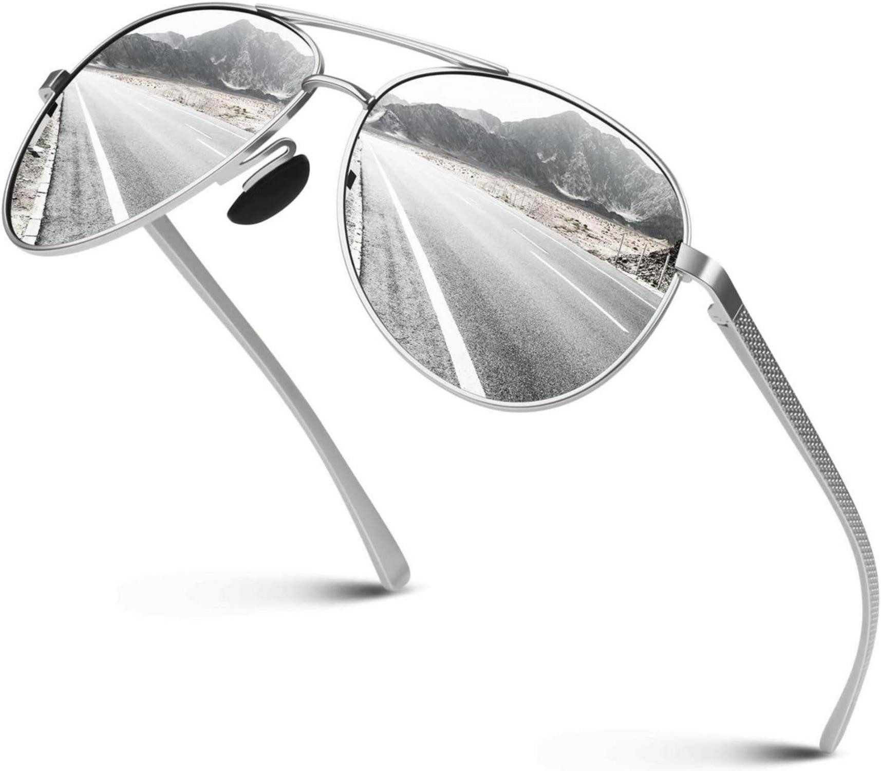 CGID Sonnenbrille Herren Pilotenbrille Prämie Al-Mg Metall Rahmen Polarisiert Fliegerbrille UV400 Schutz CAT3 CE Fahren Angeln bietet Ihnen ein unübertroffenes Erlebnis unter der Sonne. Mit ultra-leichten Nasenpads für maximalen Tragekomfort und flexiblen Scharnieren, die sich perfekt an Ihre Gesichtsform anpassen, sind diese Sonnenbrillen ideal für alle Outdoor-Aktivitäten.