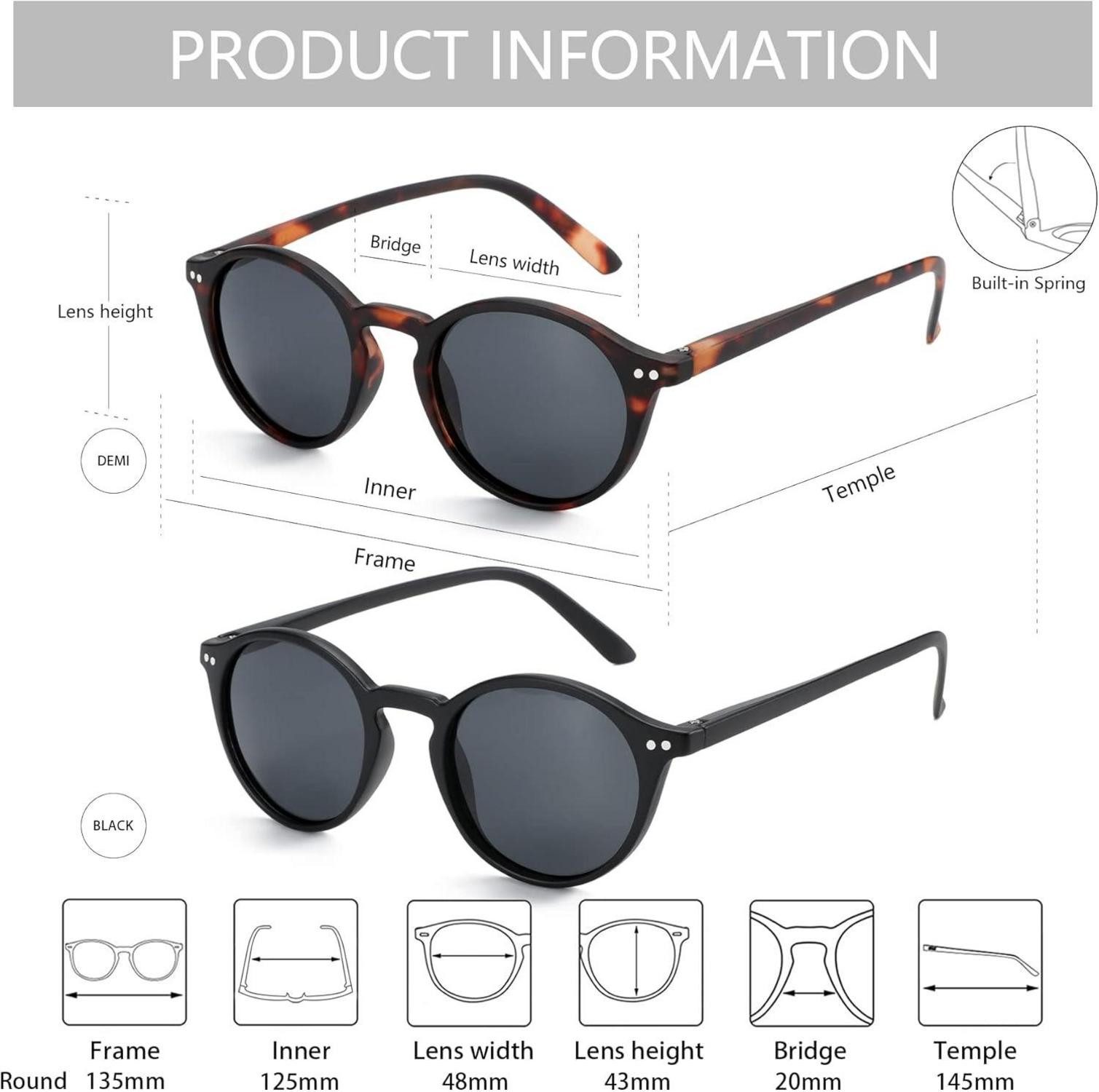 Das ZENOTTIC 2 Paare Polarisierte Sonnenbrillen Set bietet nicht nur Stil, sondern auch Funktionalität. Jedes Paket enthält zwei Sonnenbrillen mit hochwertigen Grade A TAC Polarisierte getönten Gläsern, die eine klare Sicht und maximalen Schutz bieten. Die runde Sonnenbrille hat eine Glasbreite von 48 mm, während die quadratische Sonnenbrille eine Glasbreite von 51 mm aufweist. Beide Brillen sind mit einem Nasensteg von 20 mm und Bügellängen von 145 mm ausgestattet, um einen angenehmen Sitz zu gewährleisten.