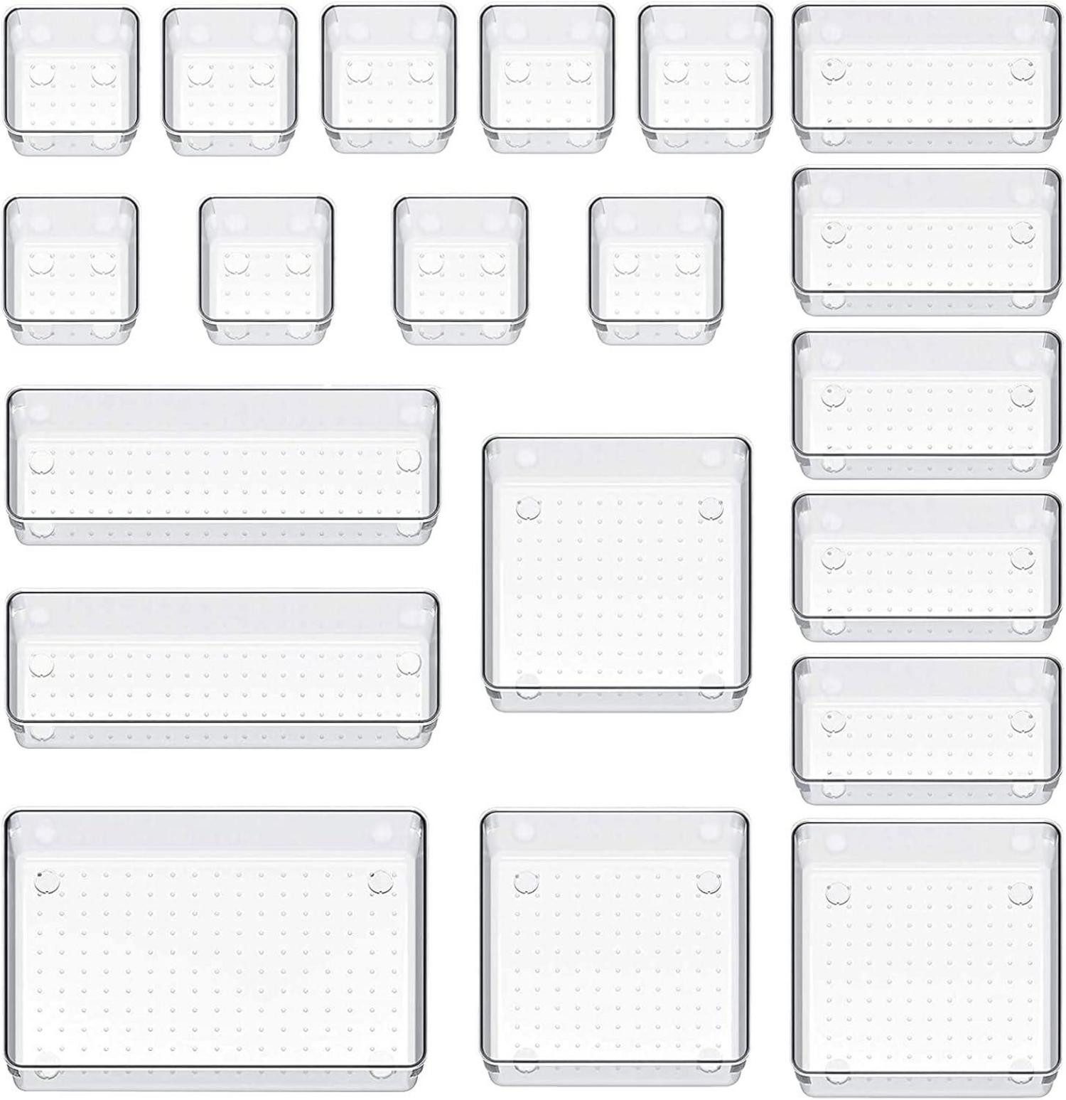 Das UHAPEER Organizer Schubladeneinsatz Set ist die perfekte Lösung, um Ihre Schubladen ordentlich und gut organisiert zu halten. Mit einem hochwertigen Acrylmaterial gefertigt, bieten diese durchsichtigen Aufbewahrungsboxen eine praktische Möglichkeit, um Kosmetika, Büromaterial, Schmuck und vieles mehr zu verstauen.