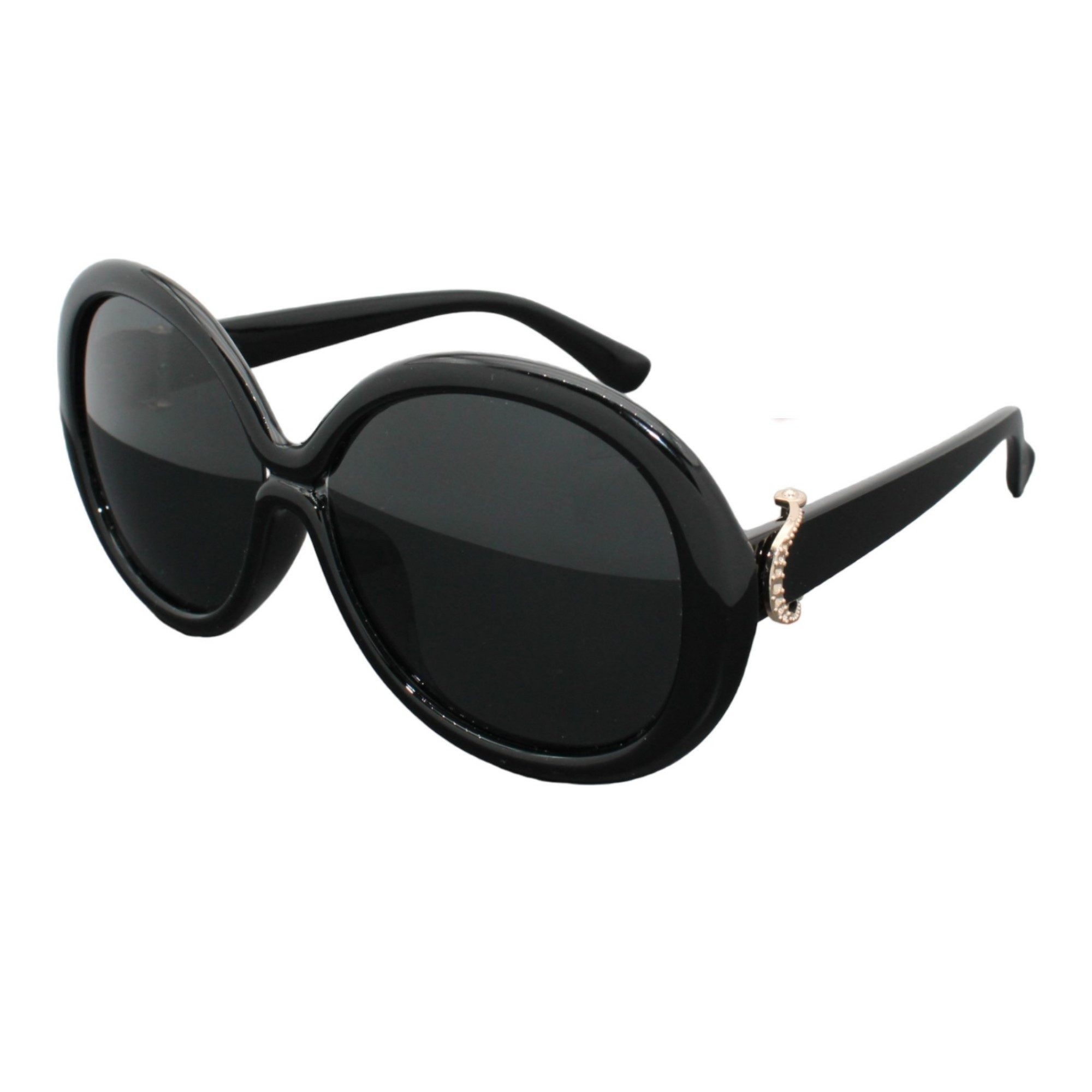 Stylische Runde Damen Sonnenbrille im Vintage Design der 60 ziger und 70 ziger Jahre der Marke Luxxada ® Glanz Schwarz mit Oversized Gläsern in Polarisiert Getönt