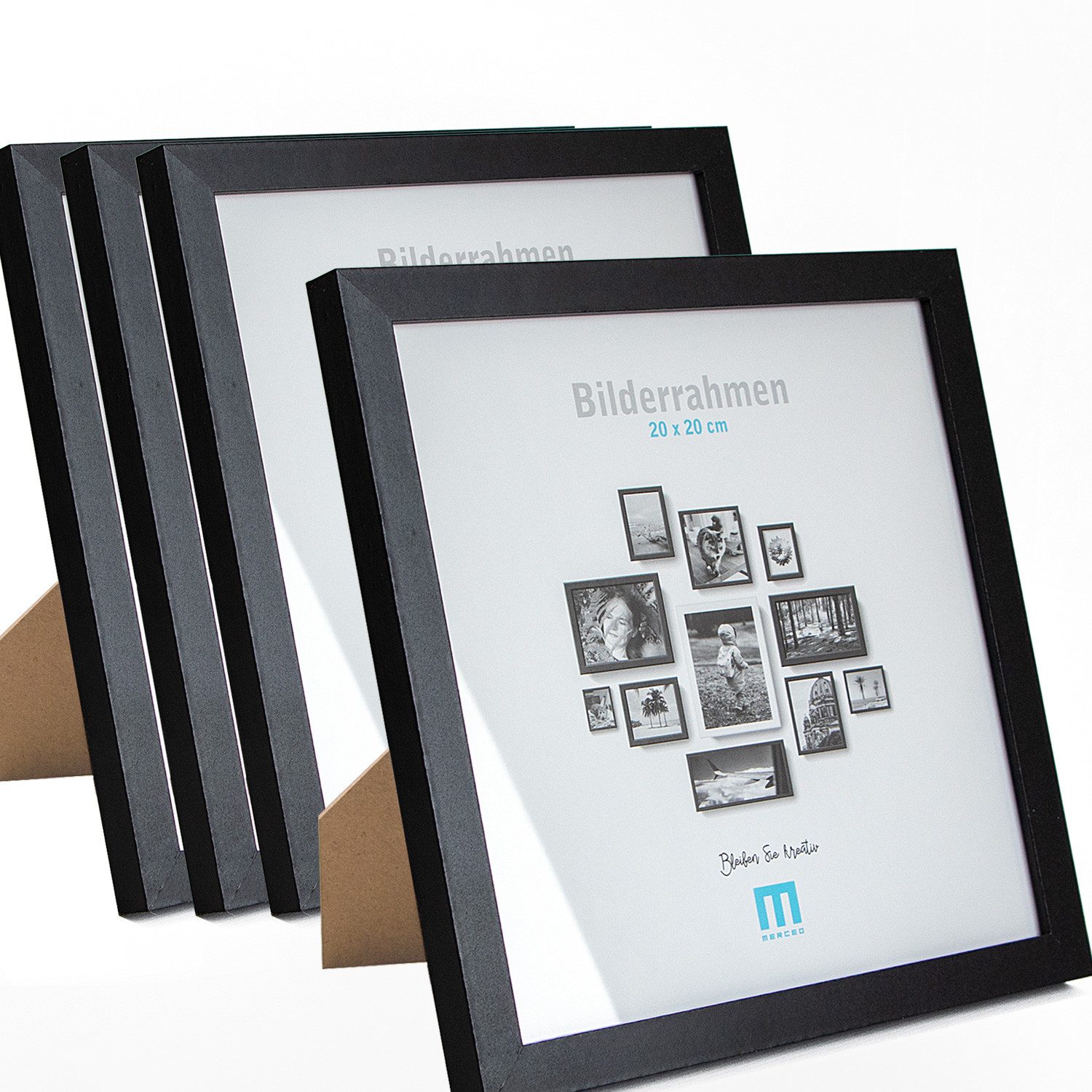 4 Stk. Bilderrahmen 20x20cm in schwarz aus MDF, minimalistisch & modern für Fotos & Bilder. Inkl. Acrylglasschutz. Eignet sich als Tisch-Aufsteller und für die Wand, Hochformat oder Querformat.