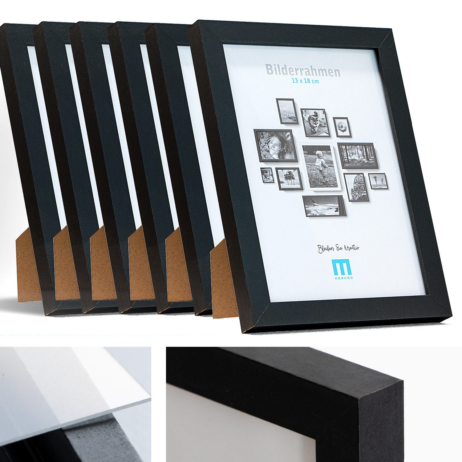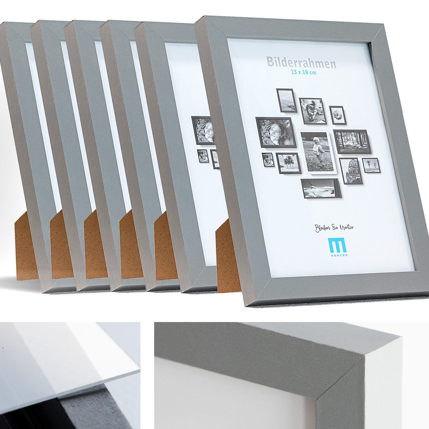 6 Stk. Bilderrahmen 13x18cm in grau aus MDF, minimalistisch & modern für Fotos & Bilder. Inkl. Acrylglasschutz. Eignet sich als Tisch-Aufsteller und für die Wand, Hochformat oder Querformat.