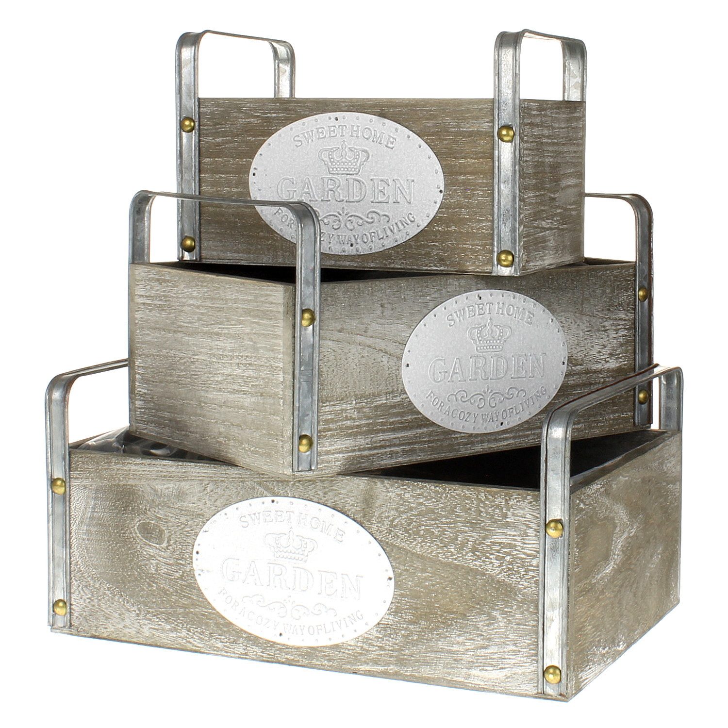 Pflanzkiste 3er Set aus Holz und Metall - Vintage Grau