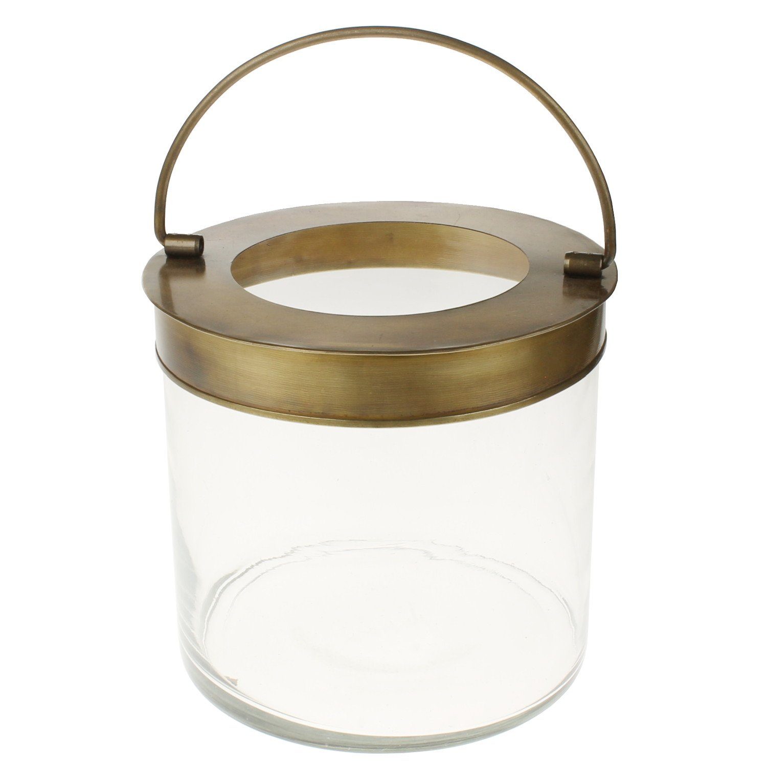 Das Windlicht aus transparentem Glas mit goldenem Rand und Griff verleiht Ihrem Zuhause einen Hauch von Eleganz und Luxus