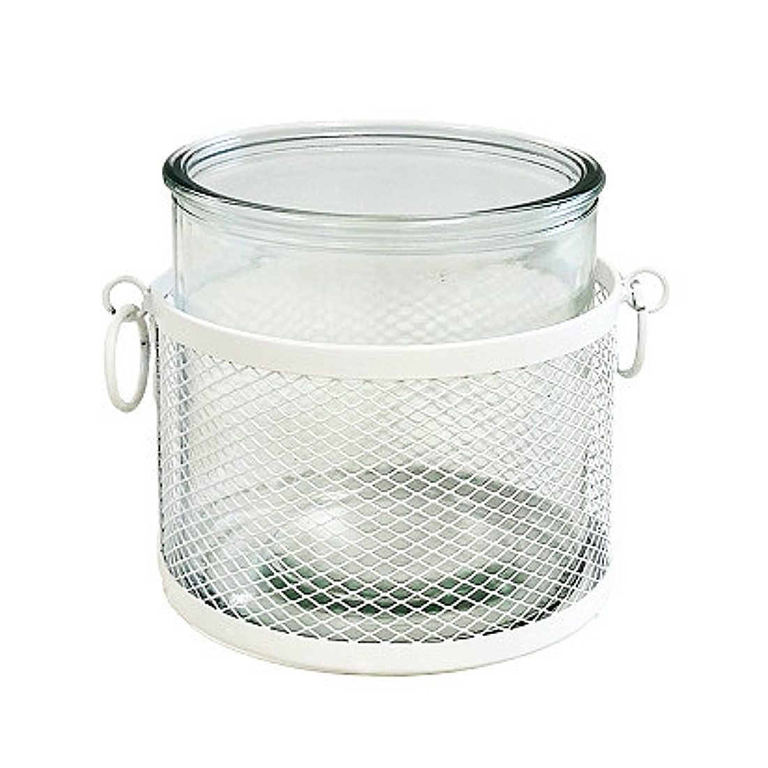 Das Windlicht aus Glas und Metall präsentiert sich in einem modernen Design, das durch die weiße Farbe eine zeitlose und stilvolle Note erhält
