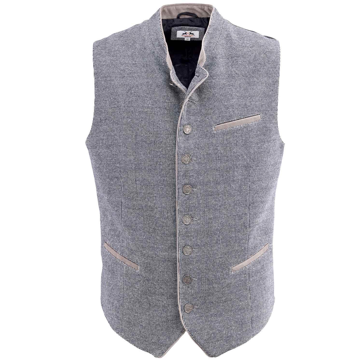 Die Maddox Kellersee Herrenweste in Grau überzeugt mit ihrem stilvollen Design, hochwertiger Verarbeitung und angenehmem Tragekomfort. Diese edle Trachtenweste besteht aus einem hochwertigen Baumwollstoff, der sich besonders weich anfühlt und gleichzeitig langlebig sowie pflegeleicht ist. Dank des klassischen Farbtons in Grau lässt sie sich vielseitig kombinieren – sei es zur traditionellen Lederhose oder zur modernen Stoffhose für einen eleganten Auftritt. Die Weste ist mit einem hochgeschlossenen Stehkragen ausgestattet, der ihr eine edle und zugleich klassische Optik verleiht. Die Knopfleiste mit dekorativen Knöpfen unterstreicht den traditionellen Trachtenstil und sorgt für eine authentische Note. Drei praktische Taschen – zwei seitliche Paspeltaschen und eine Brusttasche – bieten genügend Platz für kleine Essentials und runden das stilvolle Design perfekt ab. Die durchdachte Passform der Weste sorgt für einen optimalen Sitz, während das weiche Innenfutter für ein angenehmes Tragegefühl sorgt. Ob für festliche Anlässe wie Hochzeiten, das Oktoberfest oder als stilvolles Highlight im Alltag – die Maddox Kellersee Herrenweste ist die perfekte Wahl für modebewusste Männer, die einen Hauch von Tradition mit moderner Eleganz kombinieren möchten. Kombiniert mit einem Trachtenhemd und einer passenden Lederhose entsteht ein stilvoller und authentischer Trachtenlook, der zu vielen Gelegenheiten getragen werden kann. Auch mit einer Jeans oder Chino verleiht diese Weste dem Outfit eine klassische und elegante Note.