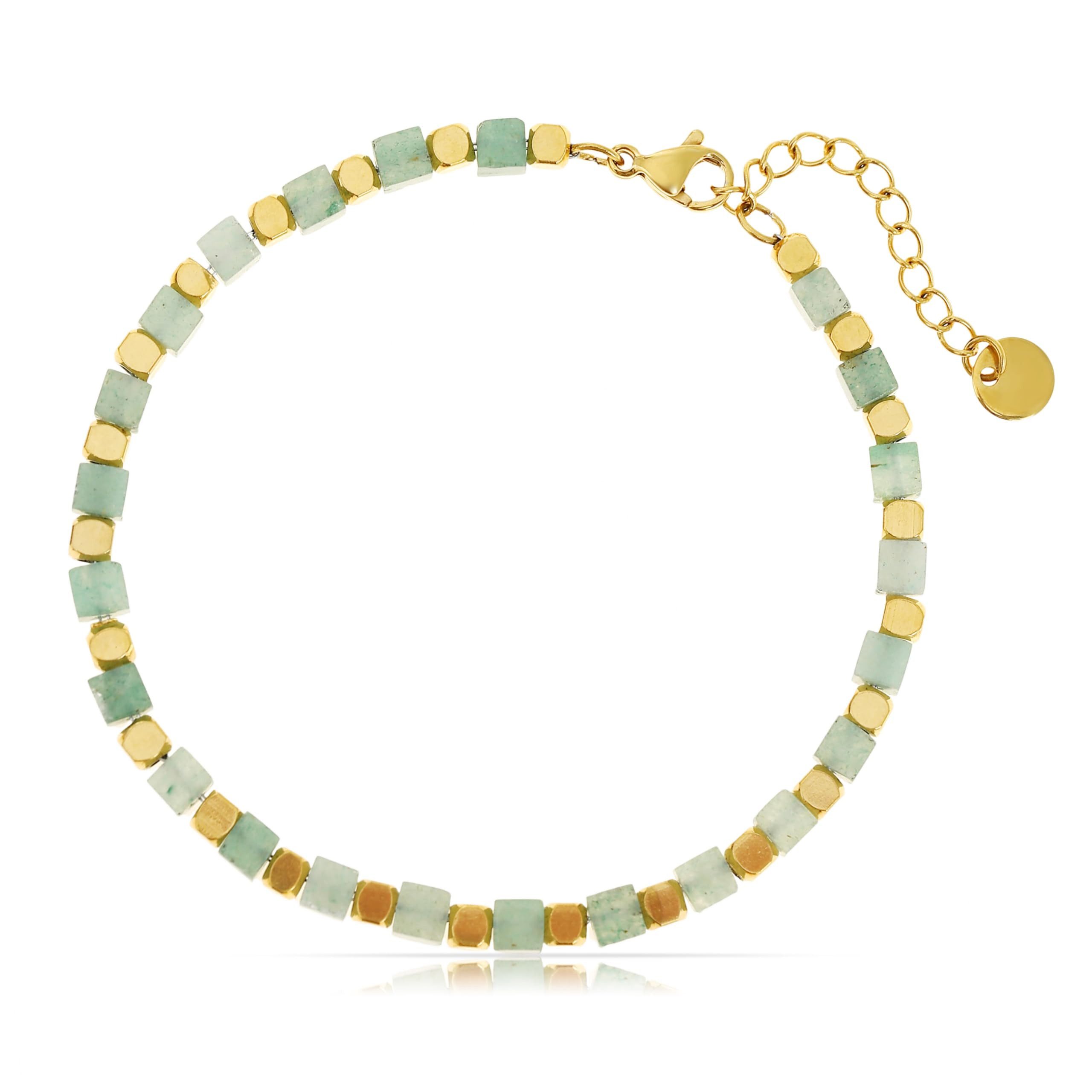 » Entdecke unser exklusives Herren Armband mit schwarzen/grauen/grünen und bunten Perlen. Zwischen den bunten Perlen befinden sich goldene Plättchen, die diesem Schmuckstück eine besondere Eleganz verleihen. Das Perlenarmband ist aus hochwertigem Edelstahl gefertigt. Das Männer Armband ist 17 cm lang und besitzt eine 5 cm verstellbare Kette, um perfekt an Dein Handgelenk angepasst zu werden.