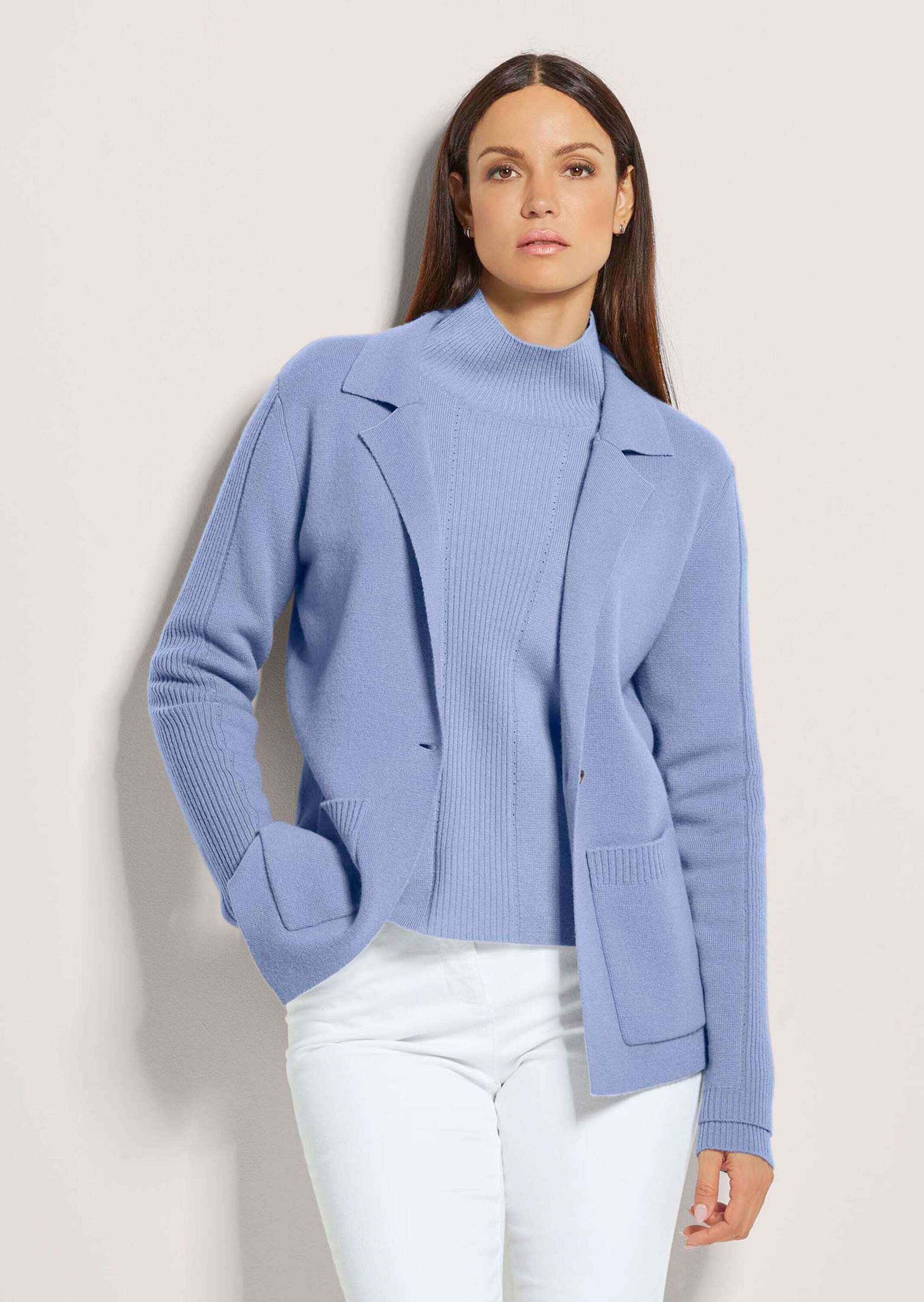 Besondere Merkmale | Blazer mit Reverskragen, Pointelle-Muster, 1-Knopf-Verschluss |