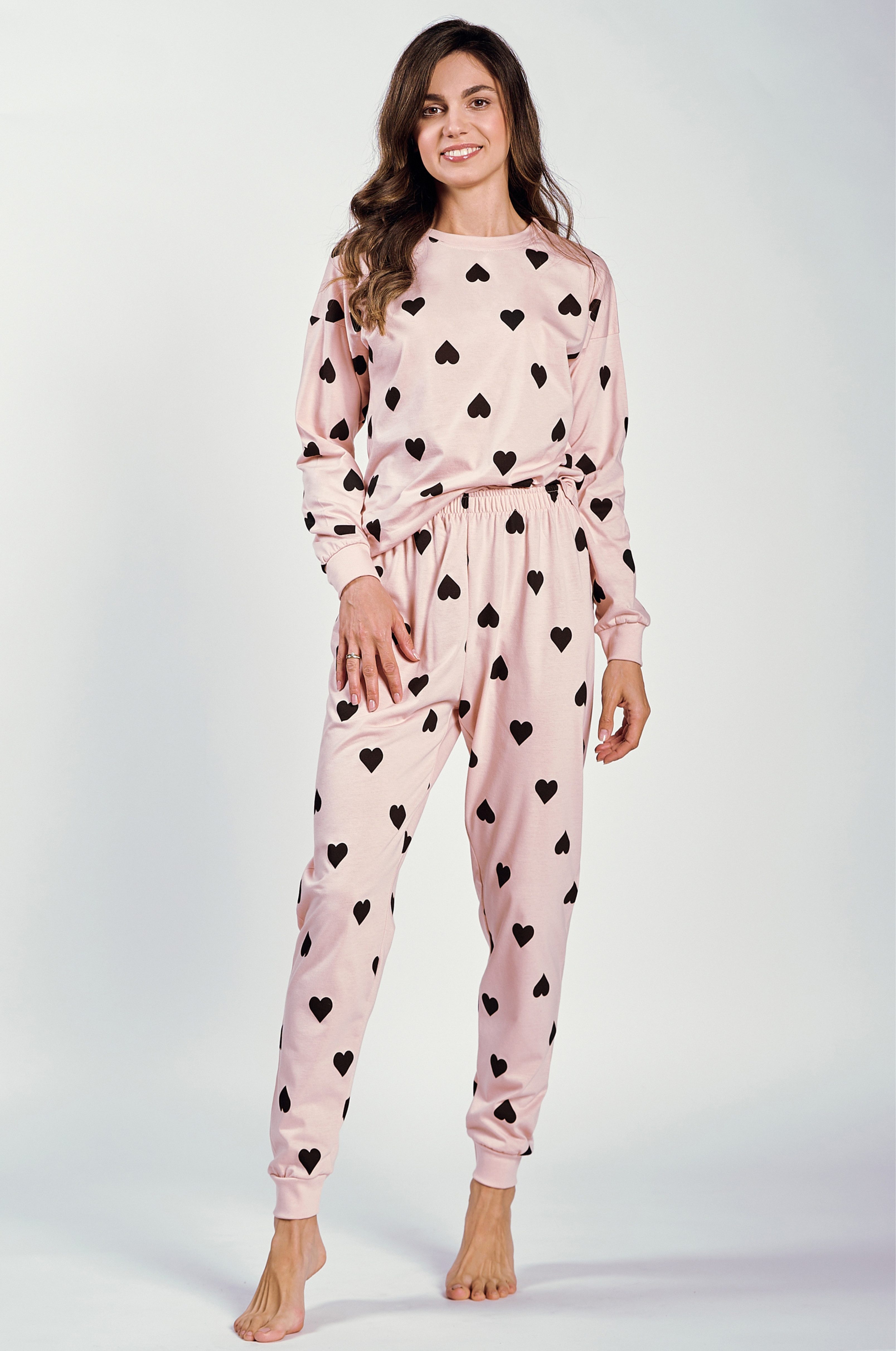 Das verspielte, aber dennoch elegante Design mit großen, schwarzen Herzen macht diesen Schlafanzug zu einem modischen Highlight in Ihrer Nachtwäsche-Kollektion. Hergestellt in Polen, verspricht dieser Pyjama höchste Verarbeitungsqualität und sorgfältig ausgewählte Materialien, die nicht nur langlebig, sondern auch pflegeleicht sind.