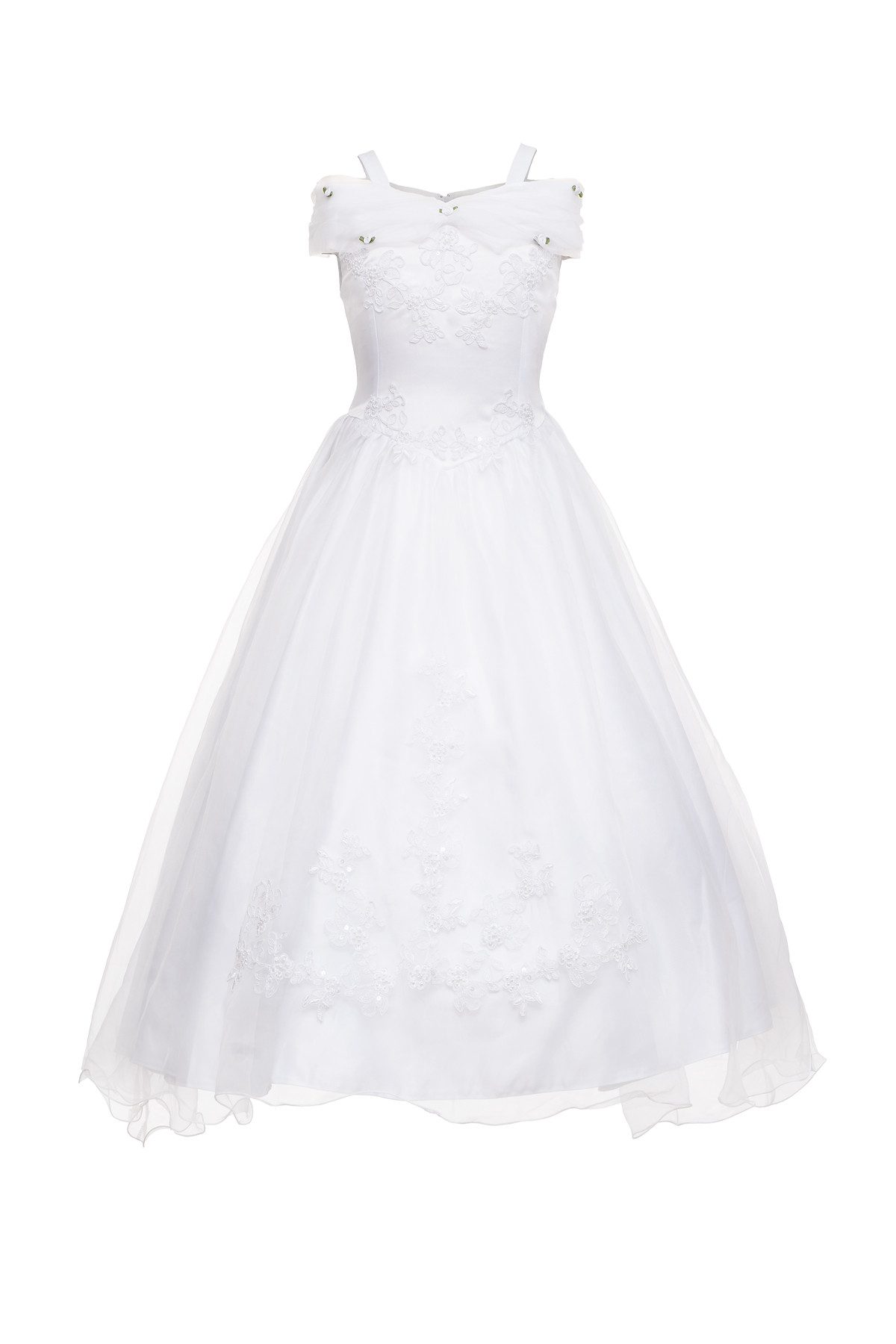 -Kommunionkleid, Kleid, Blumenmädchenkleid mit Reifrock in weiß