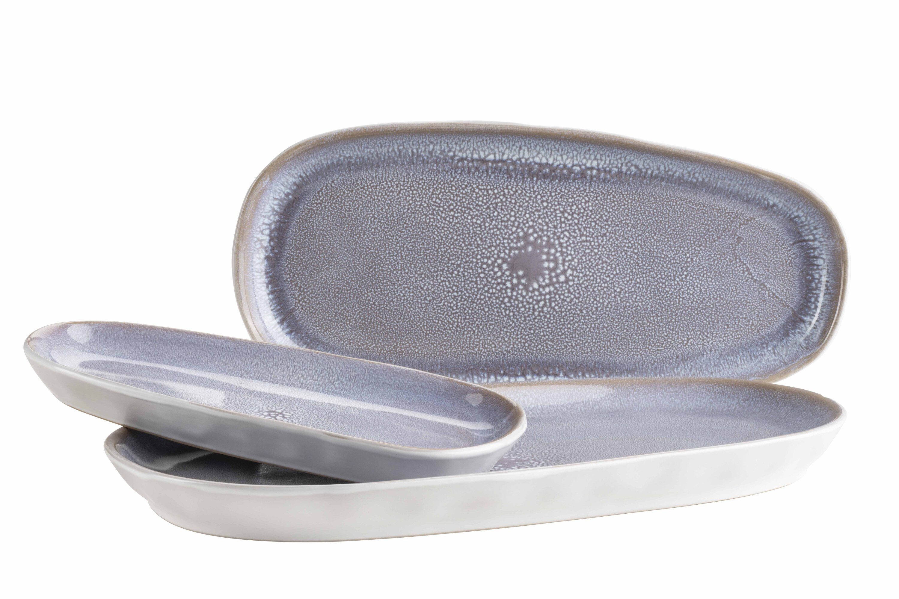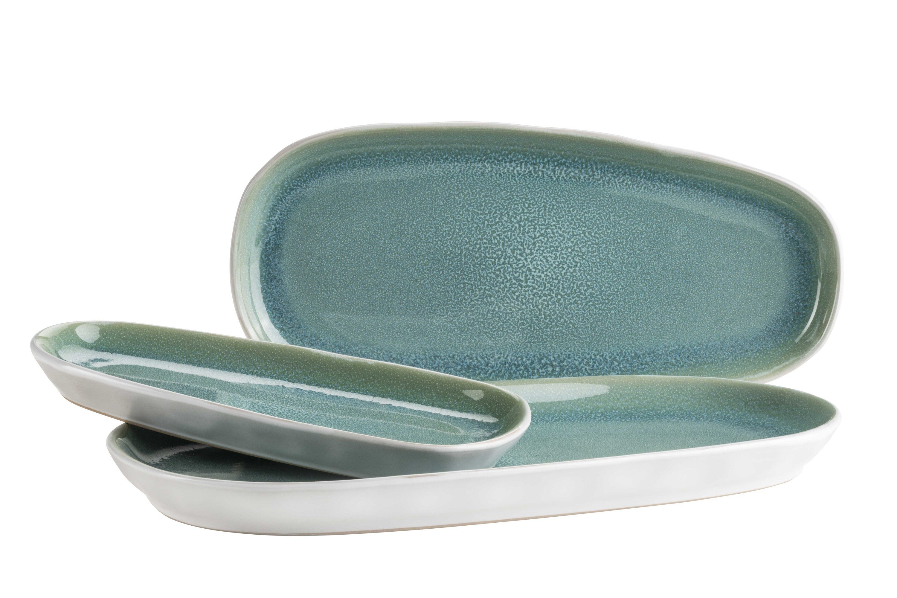 3-teiliges Plattenset: Besteht aus einer kleinen Platte (23 × 10,5 cm), einer mittleren Platte (29 × 13 cm) und einer großen Platte (33 × 17 cm)
