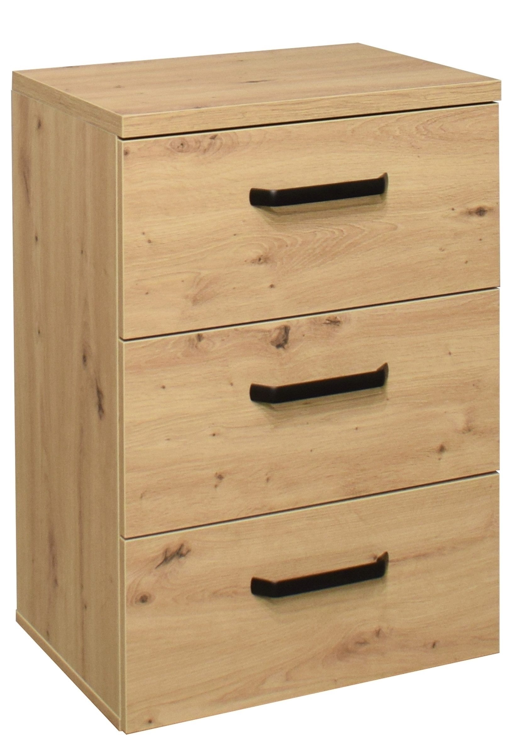 Aus Holzwerkstoff hergestellt, erhält der Schrank eine besonders stabile Struktur. Die Griffe aus Metall sind langlebig und unterstreichen den Stil. Der Schrank steht auf Gleitern aus Kunststoff. Sie sorgen dafür, dass der Boden nicht zerkratzt wird. Belastbar ist dein neues Möbelstück mit bis zu 25 Kilogramm. Das Produkt wurde in Deutschland gefertigt und steht daher für hohe Qualitätsstandards. Du hast eine Herstellergarantie von 5 Jahren.