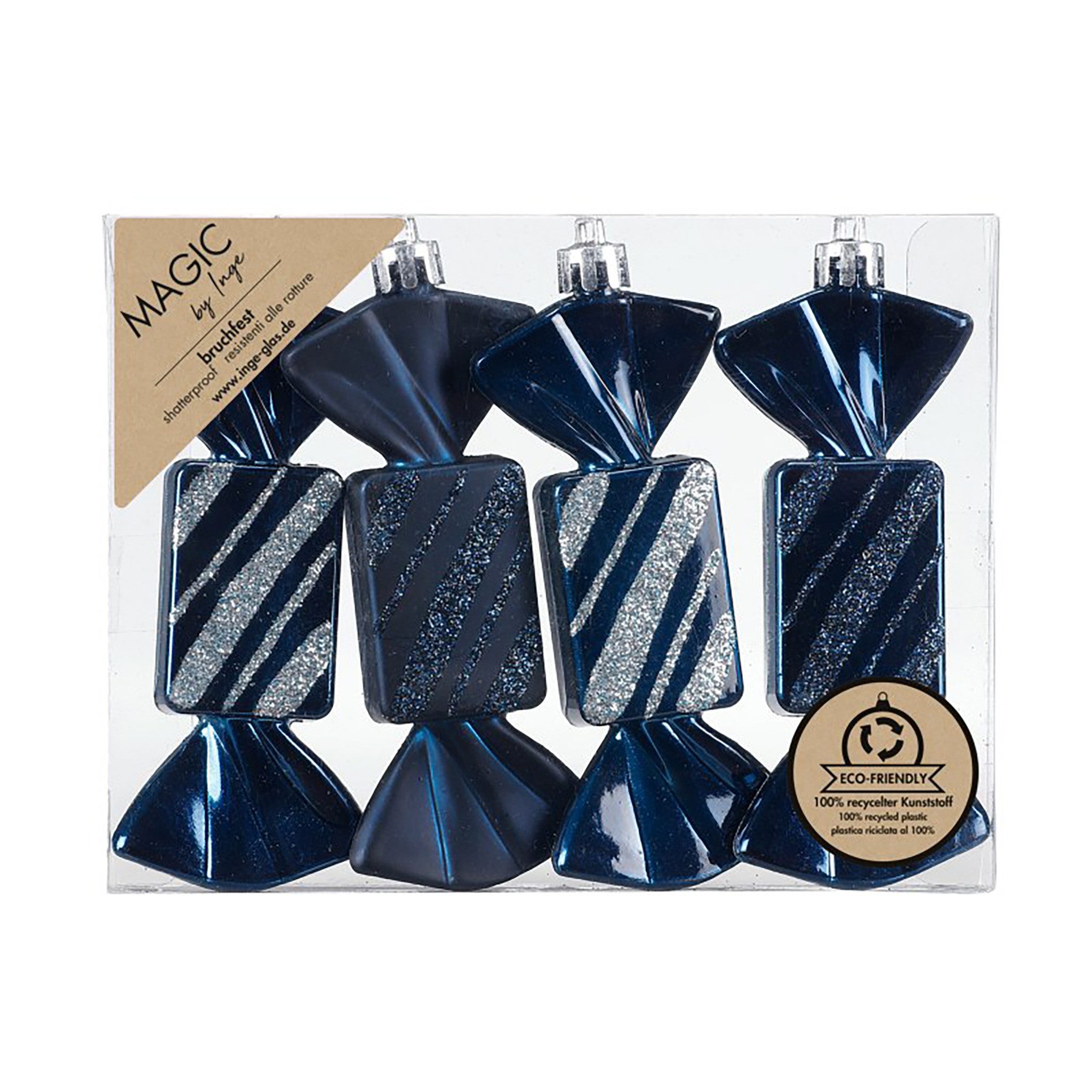 PRODUKT: Weihnachtskugeln Bonbons - matt und glänzend mit Glitter / GRÖSSE: ca. 10,5 cm / MATERIAL: Kunststoff - Plastik / INHALT: 4 Stück / FARBTON: navyblau - navy blue -