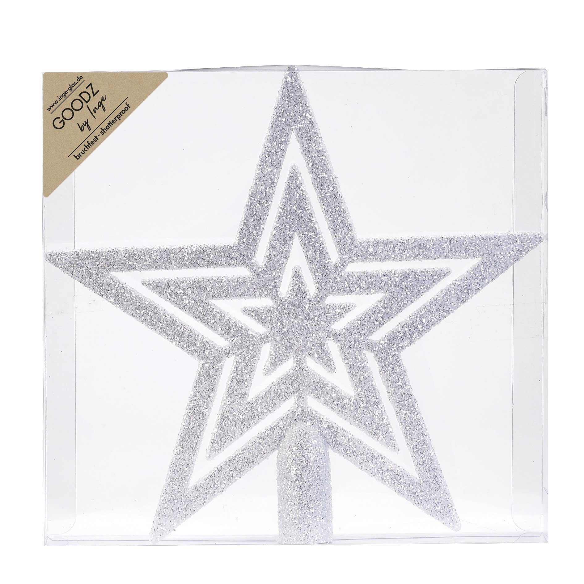 einfarbige Baumspitze in Stern - Form, bruchsicher, mit Glitzer