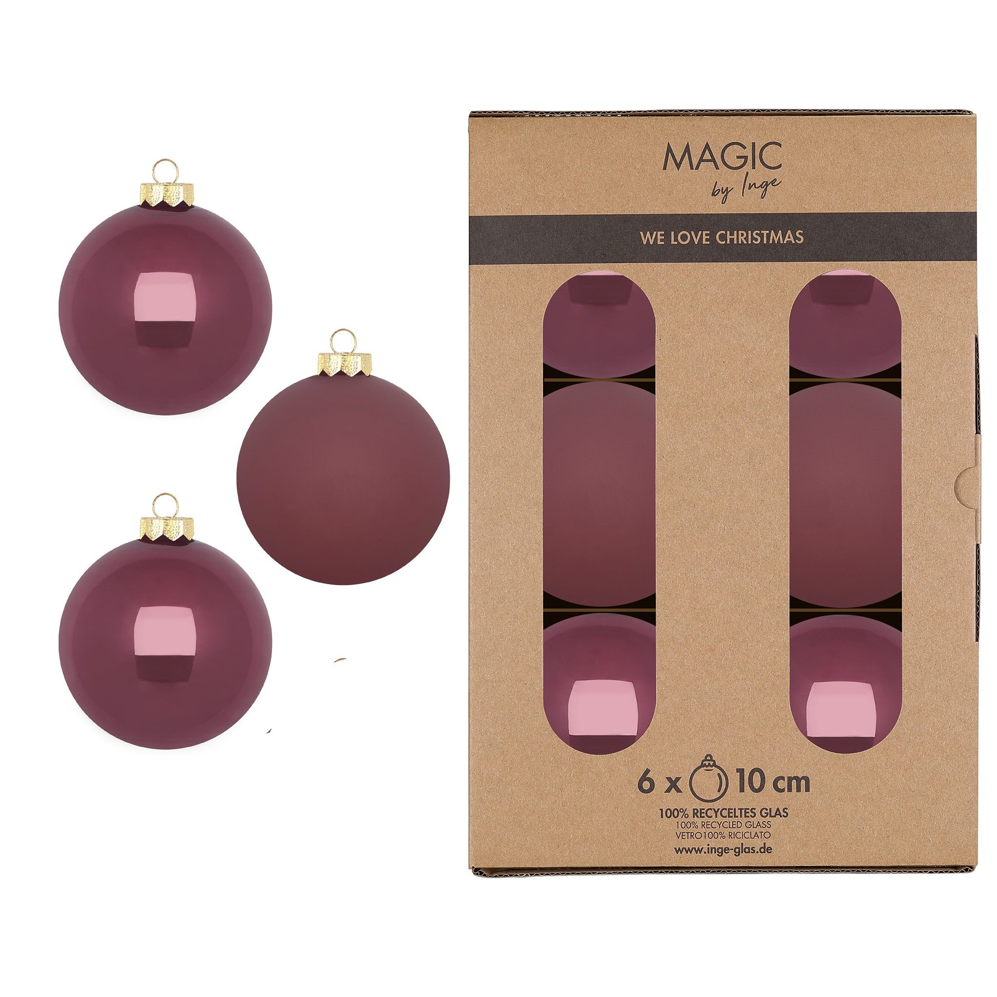 Christbaumkugeln / Weihnachtskugeln / Weihnachtsbaumkugeln Material: Glas - Durchmesser: ca. 10 cm - Packungsinhalt: 6 Kugeln in Karton - Box - Farbton: altrosa - staubrosa - vintage pink Farbserie Dusty Rose: Dusty Rose in dunklem Altrosa bringt warme Eleganz in die Weihnachtsdekoration. Der gedeckte Beere - Rosa Ton passt perfekt zu modernen, skandinavischen, klassischen und Vintage-Wohnstilen. So entsteht eine stilvolle, festliche Atmosphäre für Weihnachten, Winterdeko und stilvolles Wohnen. - Christbaumkugeln aus echtem Glas, maschinelle Herstellung - groß, einfarbig, matt und glänzend gemischt - in einer nachhaltigen Kartonbox mit Trennwänden, die als eine Aufbewahrungsbox verwendet werden kann Setzen Sie Ihren Christbaum mit dieser hübschen Christbaumdeko in Szene. Die Tannenbaumkugeln sind vielseitig einsetzbar, sei es als klassischer Christbaumschmuck, Weihnachtsanhänger oder als Tischdekoration. Diese Weihnachtsbaumanhänger bieten eine beeindruckende Kombination aus matten und glänzenden Glaskugeln, die für einen eleganten und abwechslungsreichen Look sorgen. Ob als traditioneller oder moderner Tannenbaumschmuck, diese Baumkugeln lassen sich hervorragend mit anderen Christbaumanhängern, Figuren, Weihnachtsdeko und Weihnachtsschmuck kombinieren und sorgen für eine festliche Atmosphäre in jedem Raum. Die Tannenbaumanhänger sind einfach zu befestigen und eignen sich perfekt, um den Tannenbaum oder die Festtagstafel zu verschönern. Die Weihnachtsbaum Deko ist auch eine wunderbare Geschenkidee für Freunde, Familie oder Kollegen zu Weihnachten. Überraschen Sie Ihre Liebsten mit diesem schönen Baumschmuck als Weihnachtsgeschenk. Form & Figur: Kugel, kugelförmig, rund - Stil & Aufmachung: uni & einfarbig - Farbgruppe: rosa - pink Die Farben können aufgrund von unterschiedlichen Monitor Einstellungen vom Foto leicht abweichen