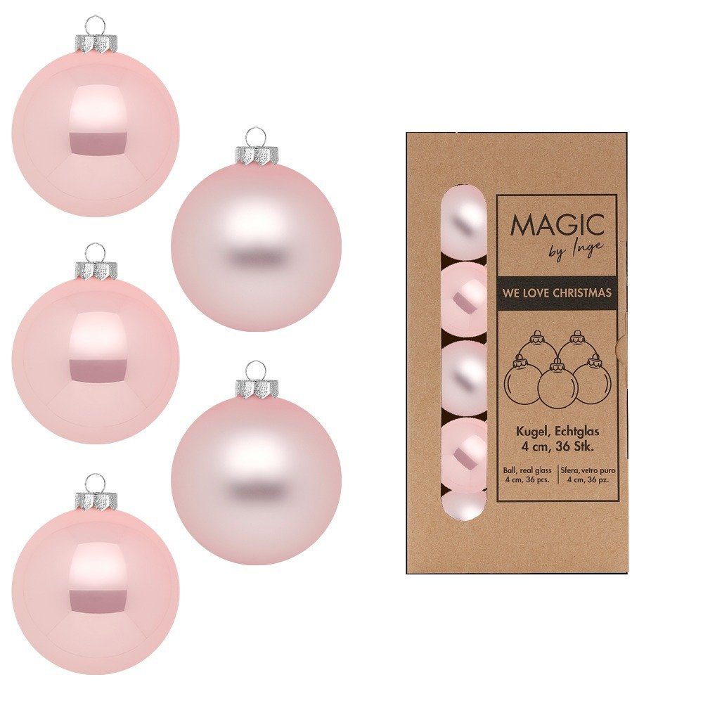 Christbaumkugeln / Weihnachtskugeln / Weihnachtsbaumkugeln Material: Glas - Durchmesser: ca. 4 cm - Packungsinhalt: 36 Weihnachtskugeln in Karton - Box - Farbe: hellrosa - rose - rosa Farbserie Lovely Magnolia: Zartrosa zeigt sich immer häufiger im minimalistischen Wohnkontext. Rosa weckt Emotionalität ohne dabei zu romantisch zu werden. Rosa hat sich dabei von seinem lieblichen, mädchen-haften Image befreit und zeigt sich vermehrt im puristischen Umfeld. Zarte Rose Töne verleihen Eleganz und cooles Interior bekommt damit eine weiche Note. - Empfohlene Kombinationen mit Grau, Silbertöne, Weiß Schöne kleine Weihnachtsbaumkugeln aus echtem Glas, maschinelle Herstellung - In einer nachhaltigen Kartonbox mit Trennwänden, die als eine Aufbewahrungsbox verwendet werden kann Setzen Sie Ihren Weihnachtsbaum mit diesen kleinen Weihnachtskugeln in Szene. Der klassische Christbaumschmuck lässt sich beliebig mit anderen Weihnachtskugeln kombinieren. Doch nicht nur als Weihnachtsbaumschmuck eignen sich die Christbaumkugeln, sondern auch als Dekokugeln. Sie verschönern den Adventskranz oder die Festtagstafel. Die Farben können aufgrund von unterschiedlichen Monitor Einstellungen vom Foto leicht abweichen