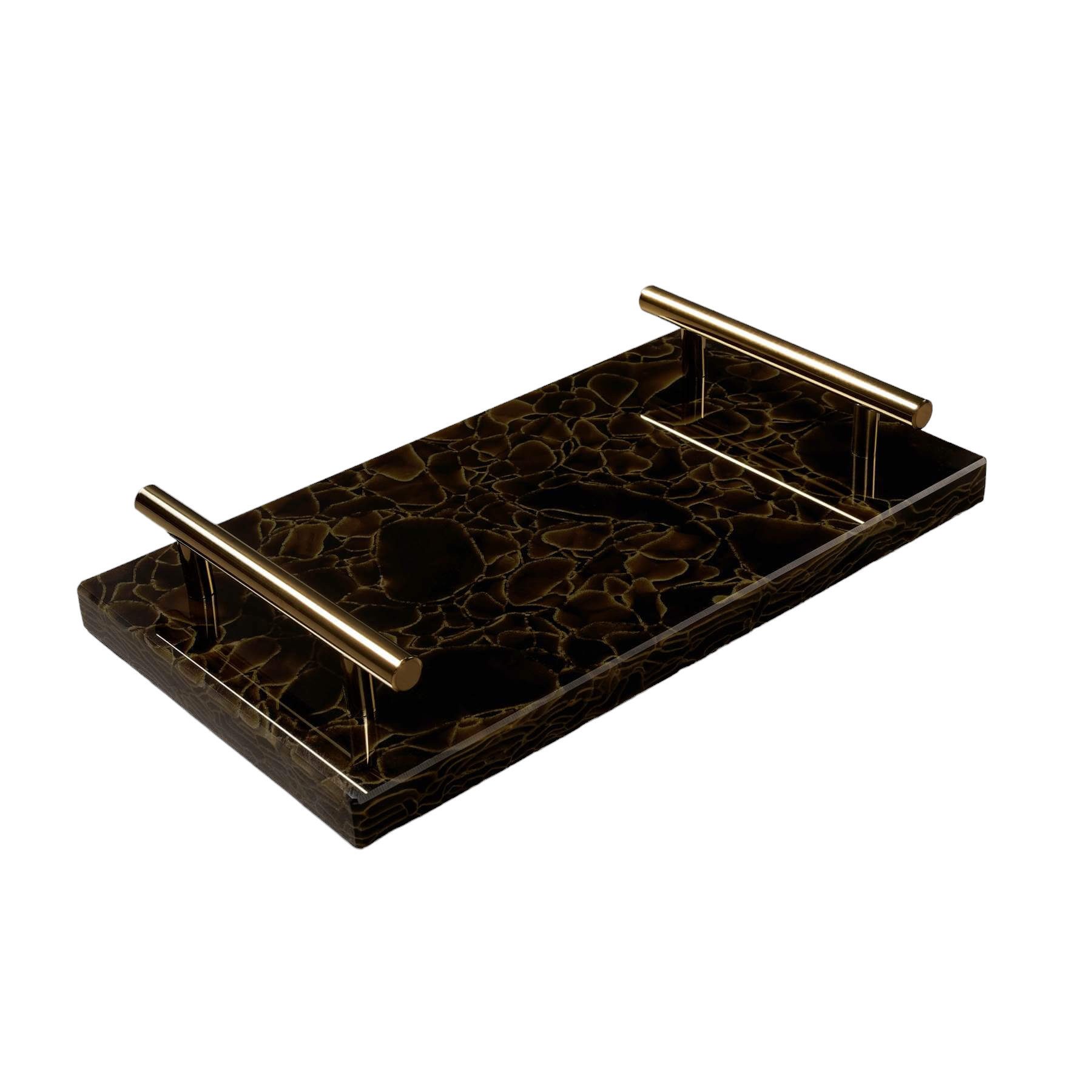 Unser Serviertablett "Notting Hill" ist ein elegantes Tablett mit goldfarbenen Griffen und unserer besonderen, polierten MAGNA Glaskeramik. Das Dekotablett im englischen Stil eignet sich ideal zur Dekoration im Wohnzimmer oder Badezimmer. Mit unseren Glaskeramik-Objekten holen Sie sich ein echtes Unikat in Ihr Zuhause, da jede Glaskeramik eine unterschiedliche Schollen-Maserung hat, die sich aus dem Einschmelzen der Glasscherben ergibt. Das Serviertablett wird in unserer Produktion in Loitsche (Sachen-Anhalt) designt und hergestellt.Was zeichnet MAGNA Atelier aus?