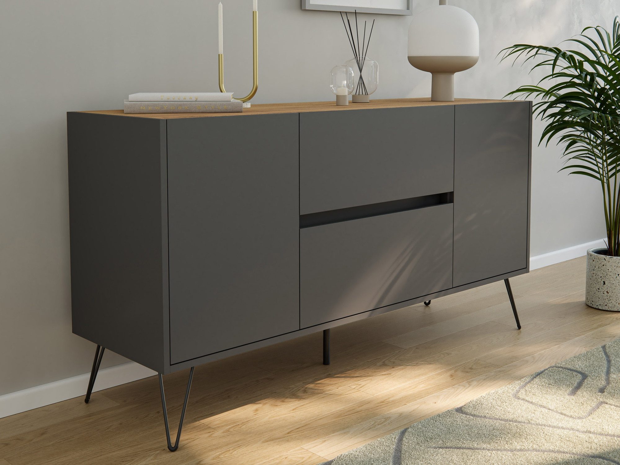 Sideboard Kommode Maya stehend mit Industriefüßen 140cm mit 2 SoftClose Schubladen und 2 Türen (B/H/T) 139cm/72cm/42cm