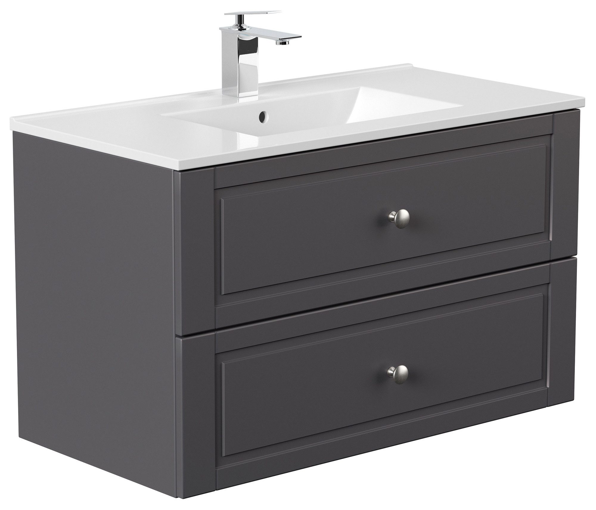 Die Ware wird zerlegt geliefert. Eine Aufbauanleitung liegt der Ware bei. Der Badunterschrank ist für die Wandmontage vorgesehen. Etwaiges Wandmontagematerial für die Aufhängung ist in der Lieferung nicht enthalten. Bitte verwenden Sie Schrauben und Dübel, die zu den Bedingungen bei Ihnen vor Ort passen. Das Waschbecken müssen Sie nicht extra an der Wand befestigen, sondern es wird auf den Unterschrank aufgesetzt. Die Montage wird mit einem Silikonstreifen zwischen Badmöbel und Waschbecken sowie Badezimmerwand optimiert. Der Anschluss für Ab- und Zulauf erfolgt wie üblich. Wir empfehlen, den Wasseranschluss von einer Fachfirma durchführen zu lassen.
